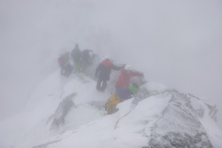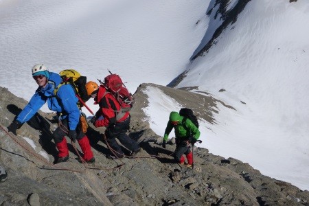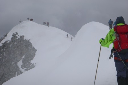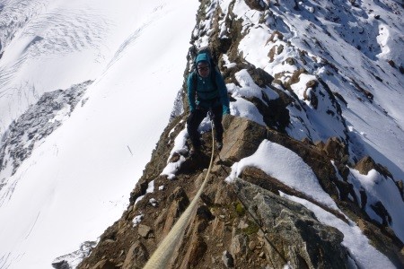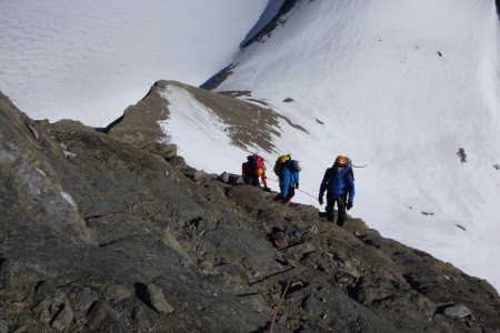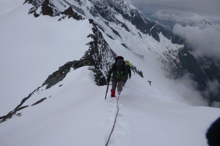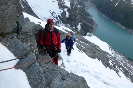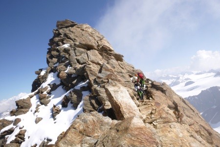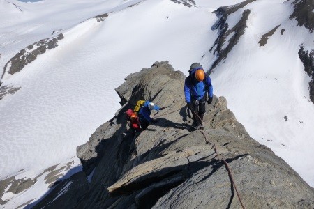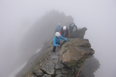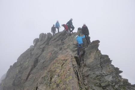 Nach einer Nächtigung über das Glocknerleitl auf den Gipfelgrat. Ab hier erwartete uns anregende