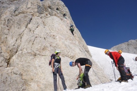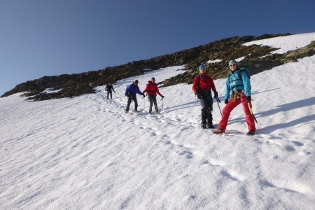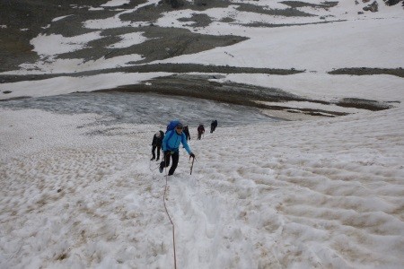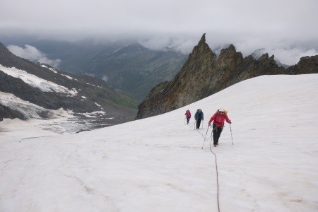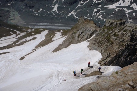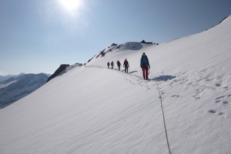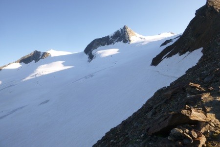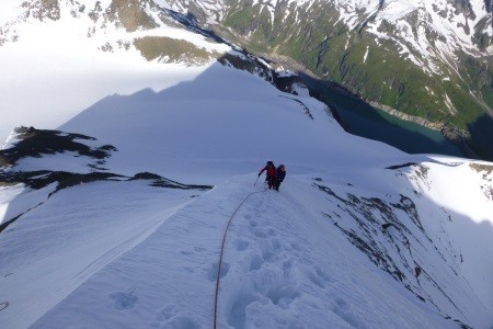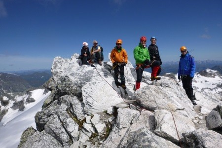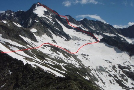 Am nächsten Morgen über mäßig geneigtes Gelände geht es zum Niederen Zaun,3.000m, am Beginn des Schlatenkeeses. Aufstieg am Schlatenkees in Richtung Kleinvenediger und vorbei an der Venedigerscharte, 3.407m, zum Gipfelgrat. Die letzten Meter etwas ausgesetzt zu Fuß zum Gipfelkreuz.