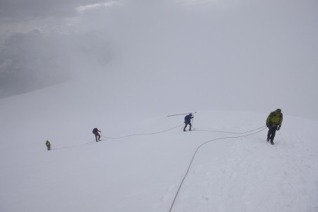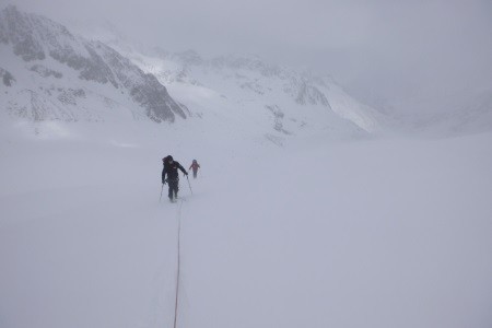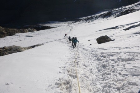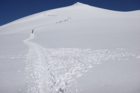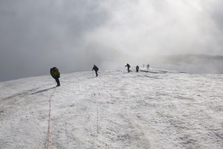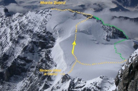 Von der Alpini Hütte (2.878 m) über den Zebru Ferner durch die Nordwand auf den Gipfel des Monte Zebru.