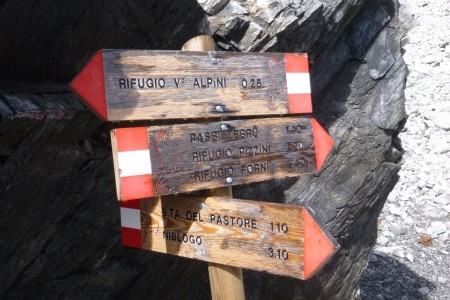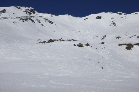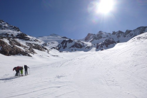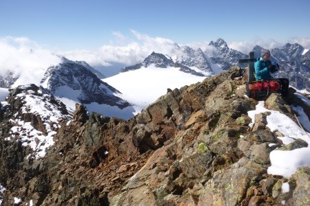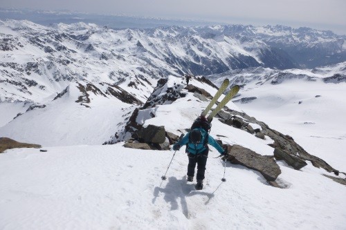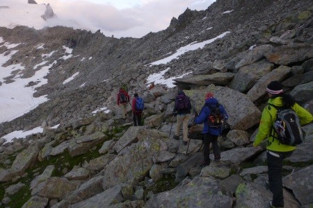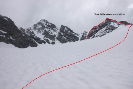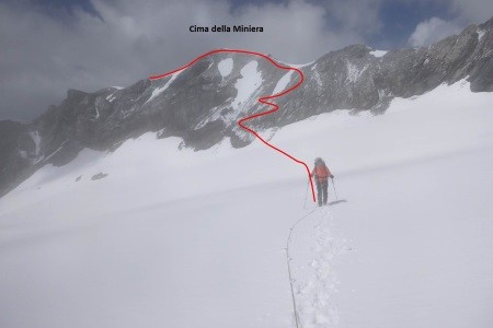Der Abstieg erfolgte über den Westgrat und weiter über die Cima della Miniera ( 3.408 m) zur Pizzini Hütte ( 2.700 m).