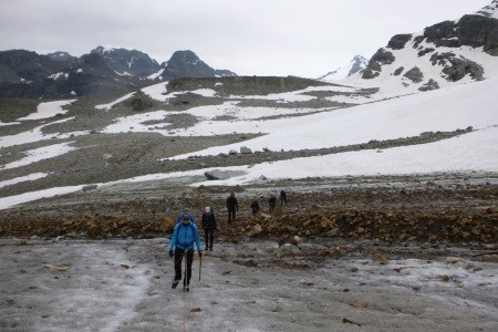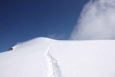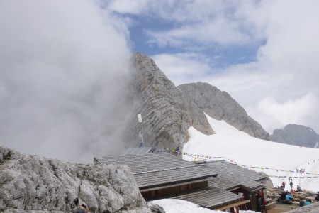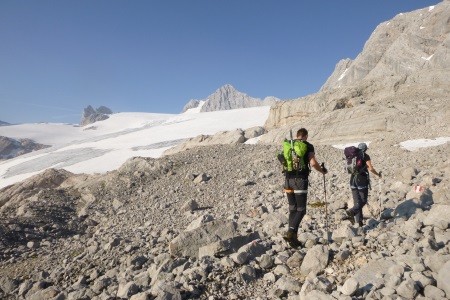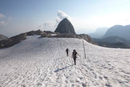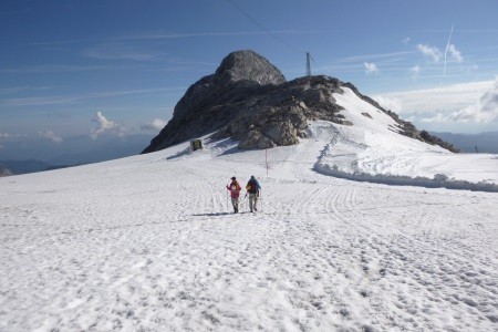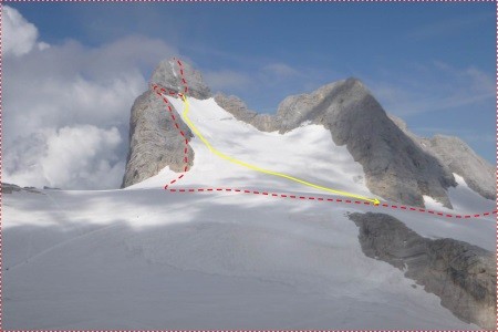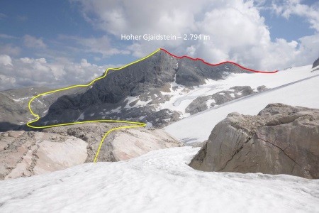 Vom Hunerkogel ( Bergstation Dachsteinseilbahn) über den Hohen Gjaidstein, 2.794 m, zur Simonyhütte, 2.203 m. Nach einer Nächtigung zurück über den Hallstätter Gletscher zum Hunerkogel.