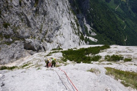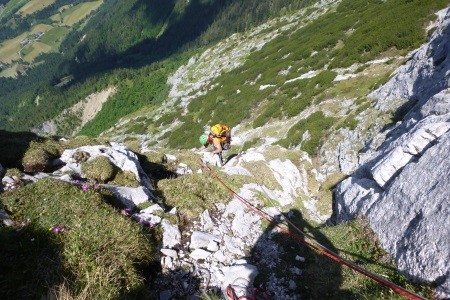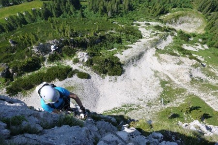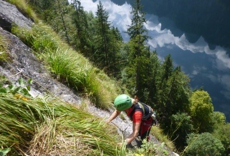 Alpine Kletterroute durch die Trisselwand auf den Trisselberg - 1.754 m, hoch über dem Altausseer See/Österreich.