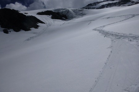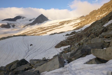 Vom Defreggerhaus nordwärts zum Rücken des Mullowitz Aderls (Anseilpunkt), über den spaltenreichen Rainerkees