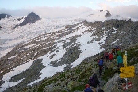 Vom Matreier Tauernhausmittels Taxis nach Innergschlöß. Über markierten Steig vorbei an der Alten Prager Hütte zur Neuen Prager Hütte, 2.796 m.