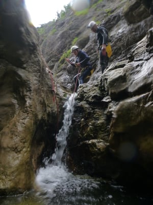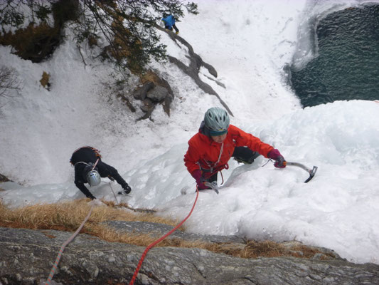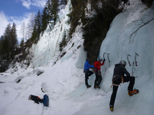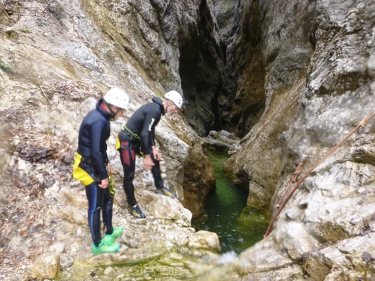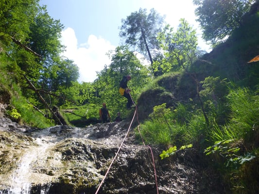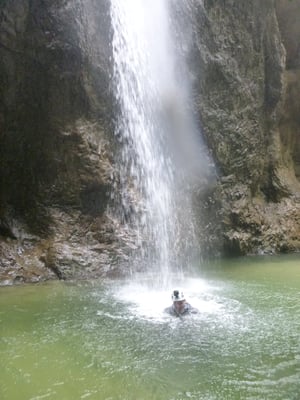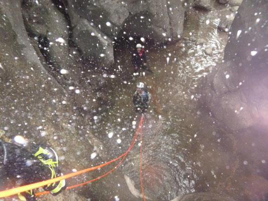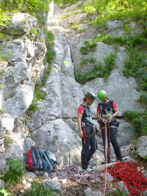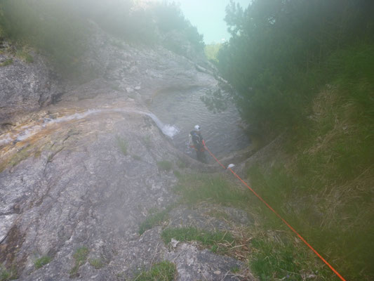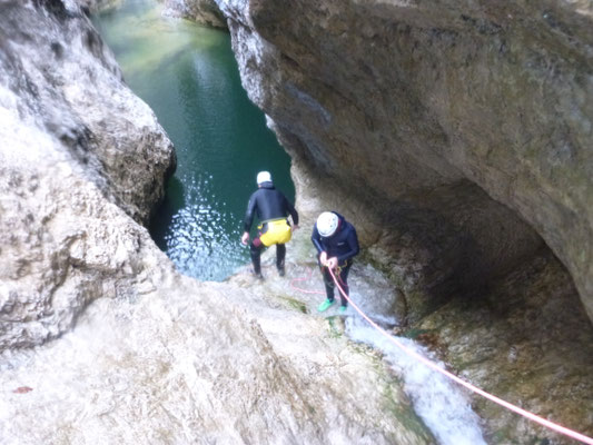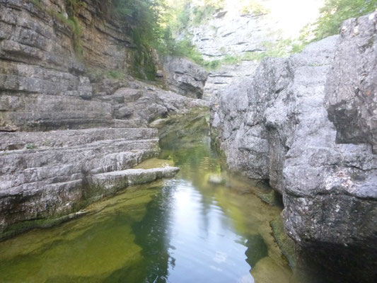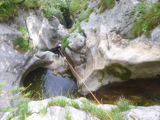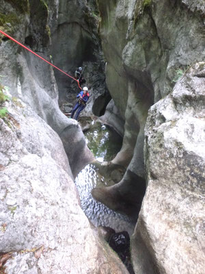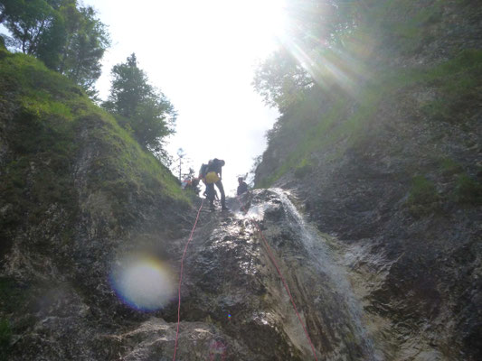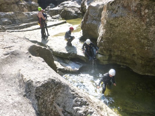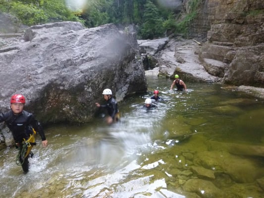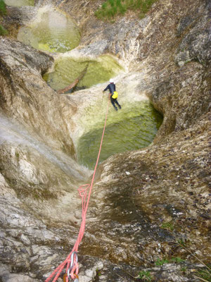 Zahlreiche Sprünge ( die man umgehen kann), kurze Schwimmstrecken, lustige Rutschen …..