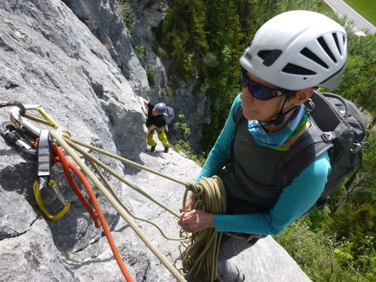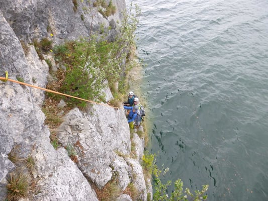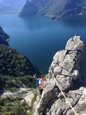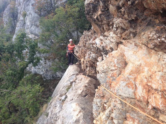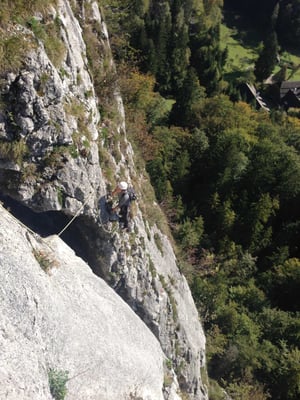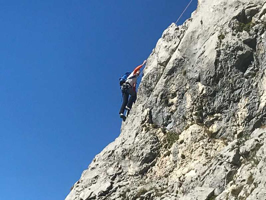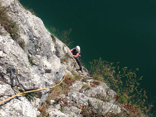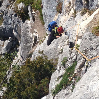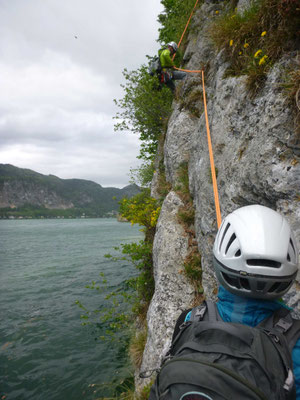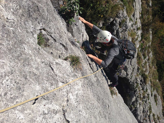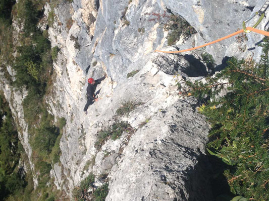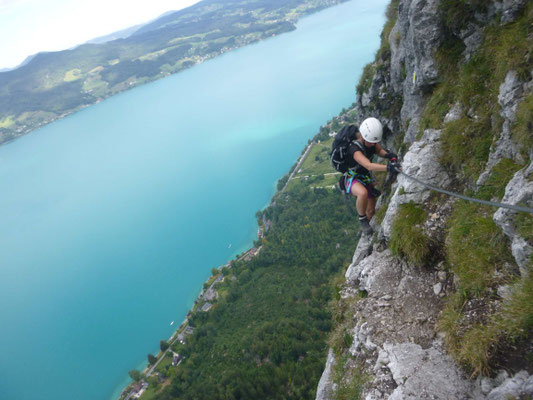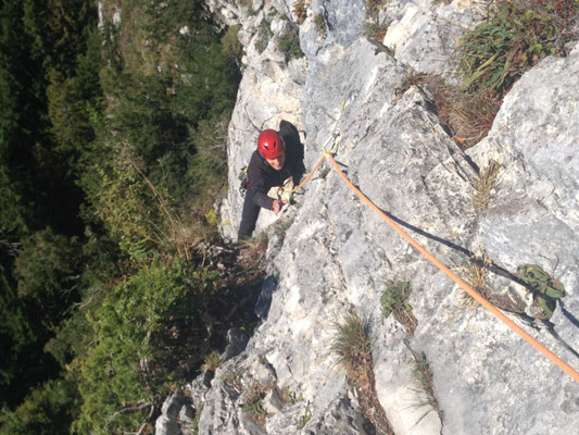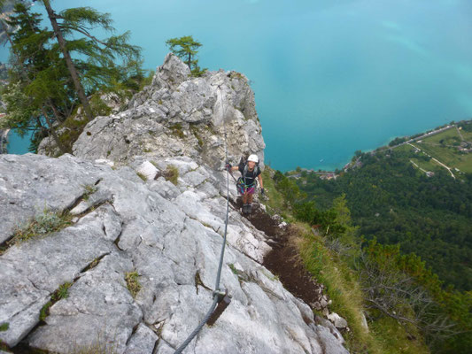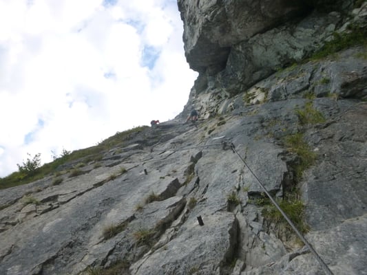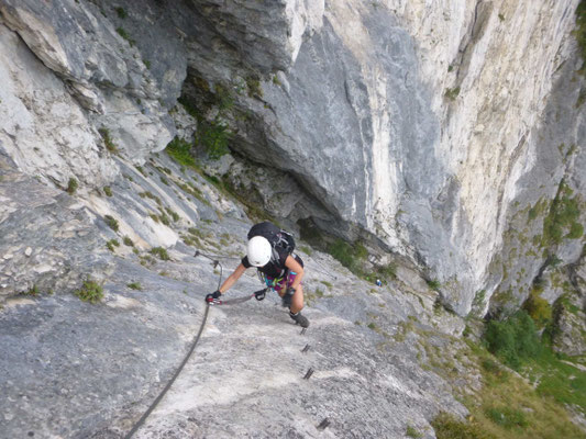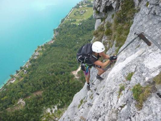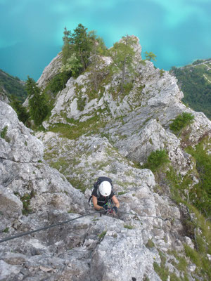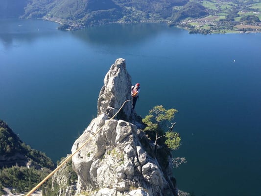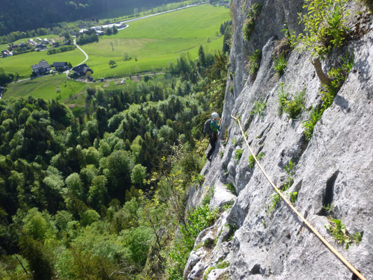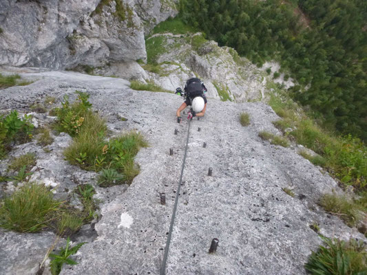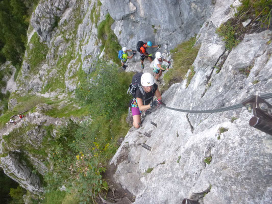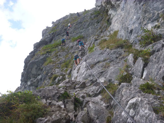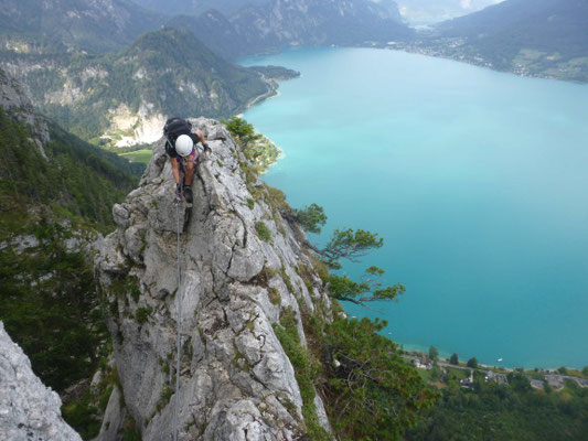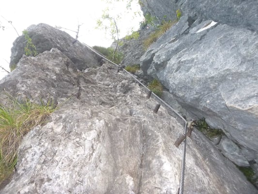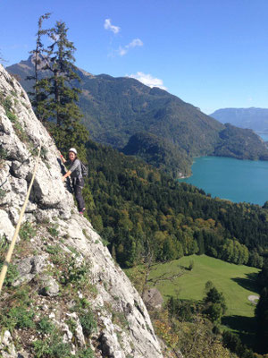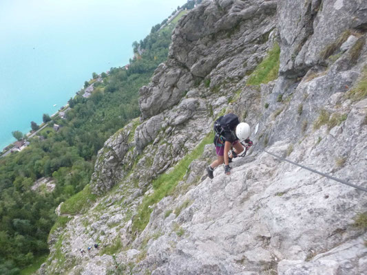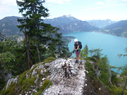Schöner, gut versicherter Klettersteig mit herrlichem Panorama und Blick zum Attersee. Schwierigkeit D.