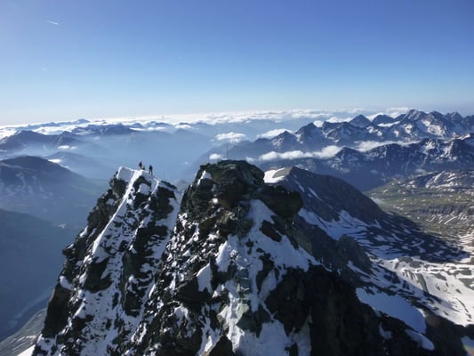 Wiesbachhorn-3.564m, Hint. Bratschenkopf-3.414 m, Klockerin-3.425 m, Fuscherkarkopf-3.331 m, Hohe Riffl-3.338m