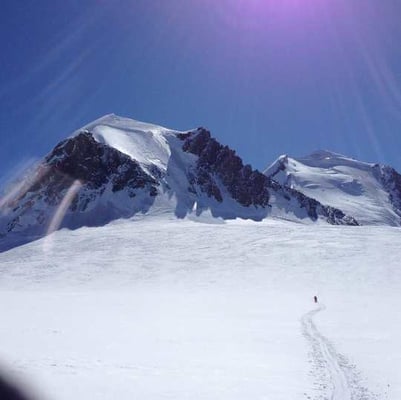 Von der Cosmique Hütte über den Mont Blanc du Tacul und Mont Maudit auf das Dach der Alpen. Abstieg über Bosse Grat und Bellevue Bahn nach Les Houches.