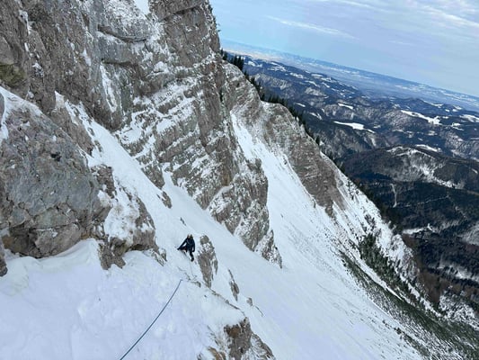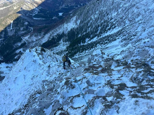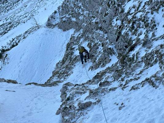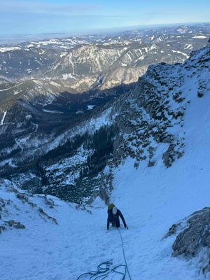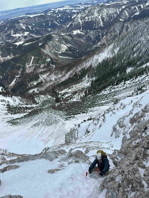 Abenteuerliche alpine Mixedkletterei durch die kalte Nordwand