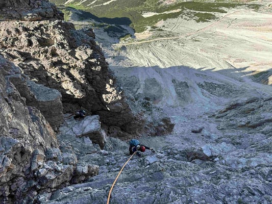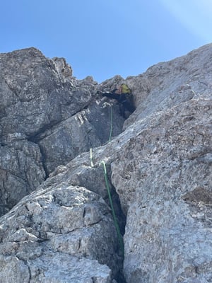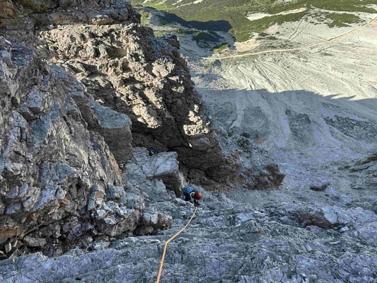 Ein Klassiker mit Charakter: Der „Zeitsprung“ führt in 17 Seillängen durch die eindrucksvolle Ostwand der Großen Zinne. Über Risse, Platten, Kamine und einen spannenden Quergang.