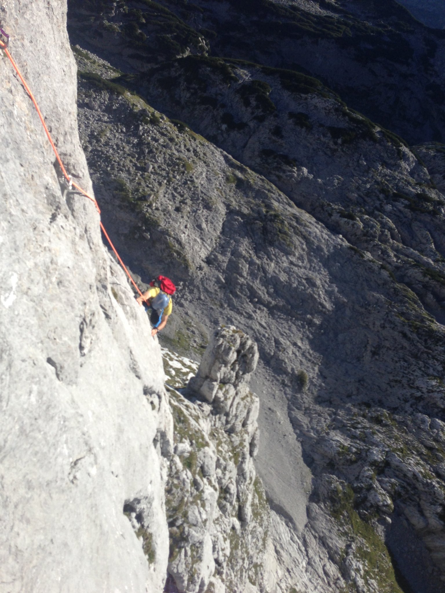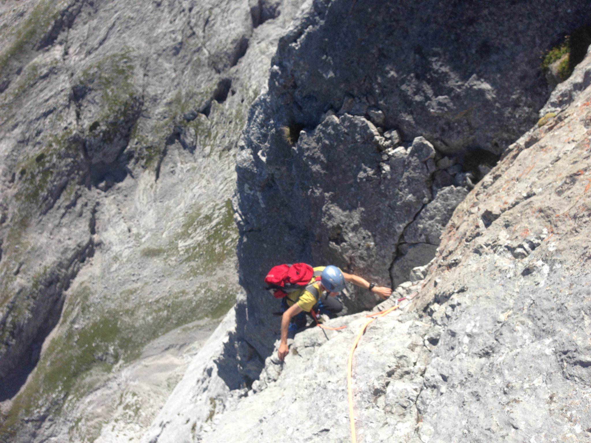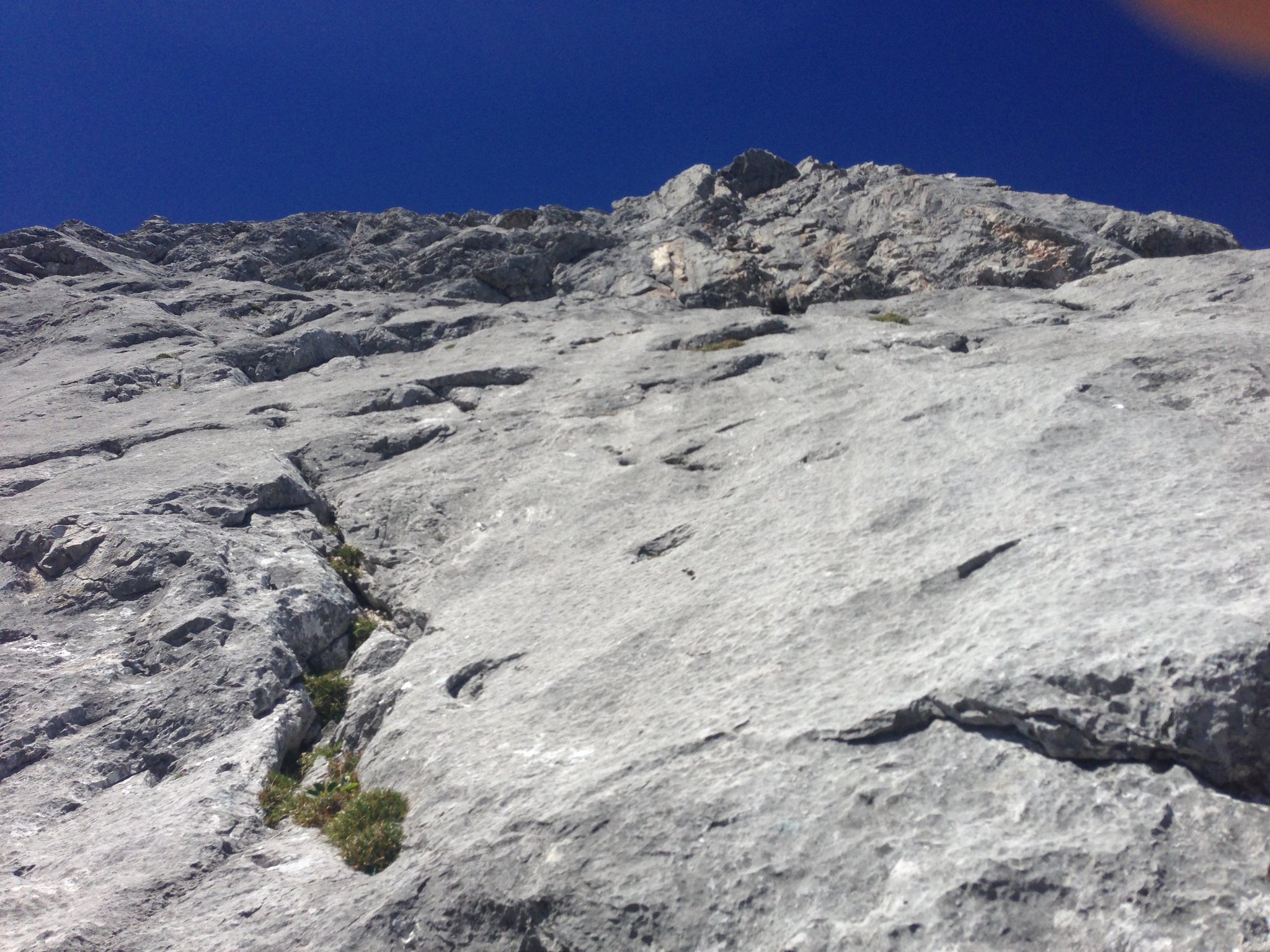 Großer und vielbegangener Klassiker über Kanten, Platten und kleinen Überhängen im kompakten Kalk, im Dachsteingebiet.