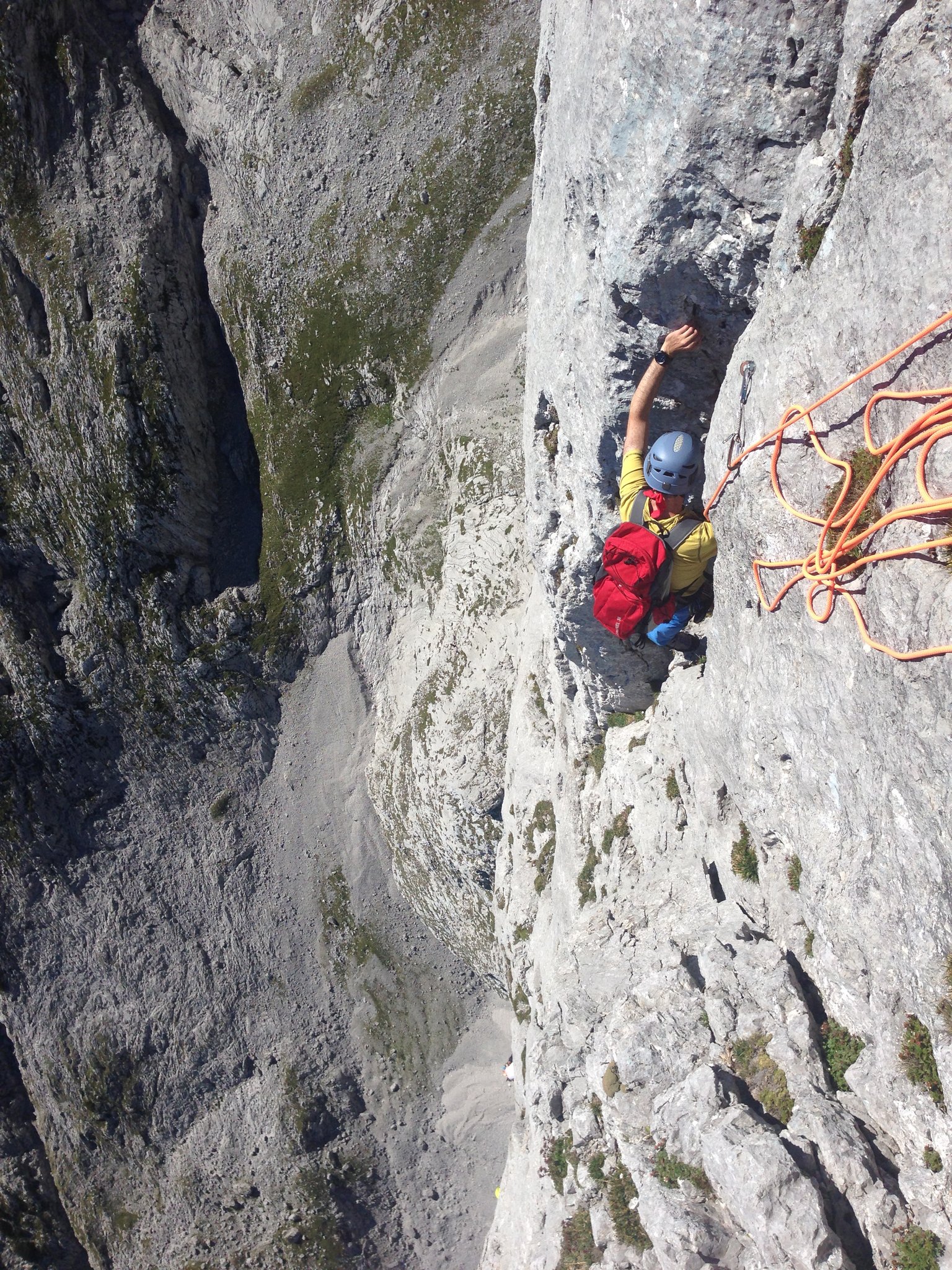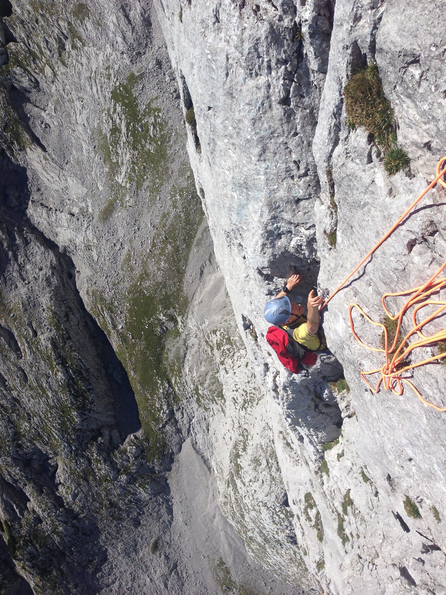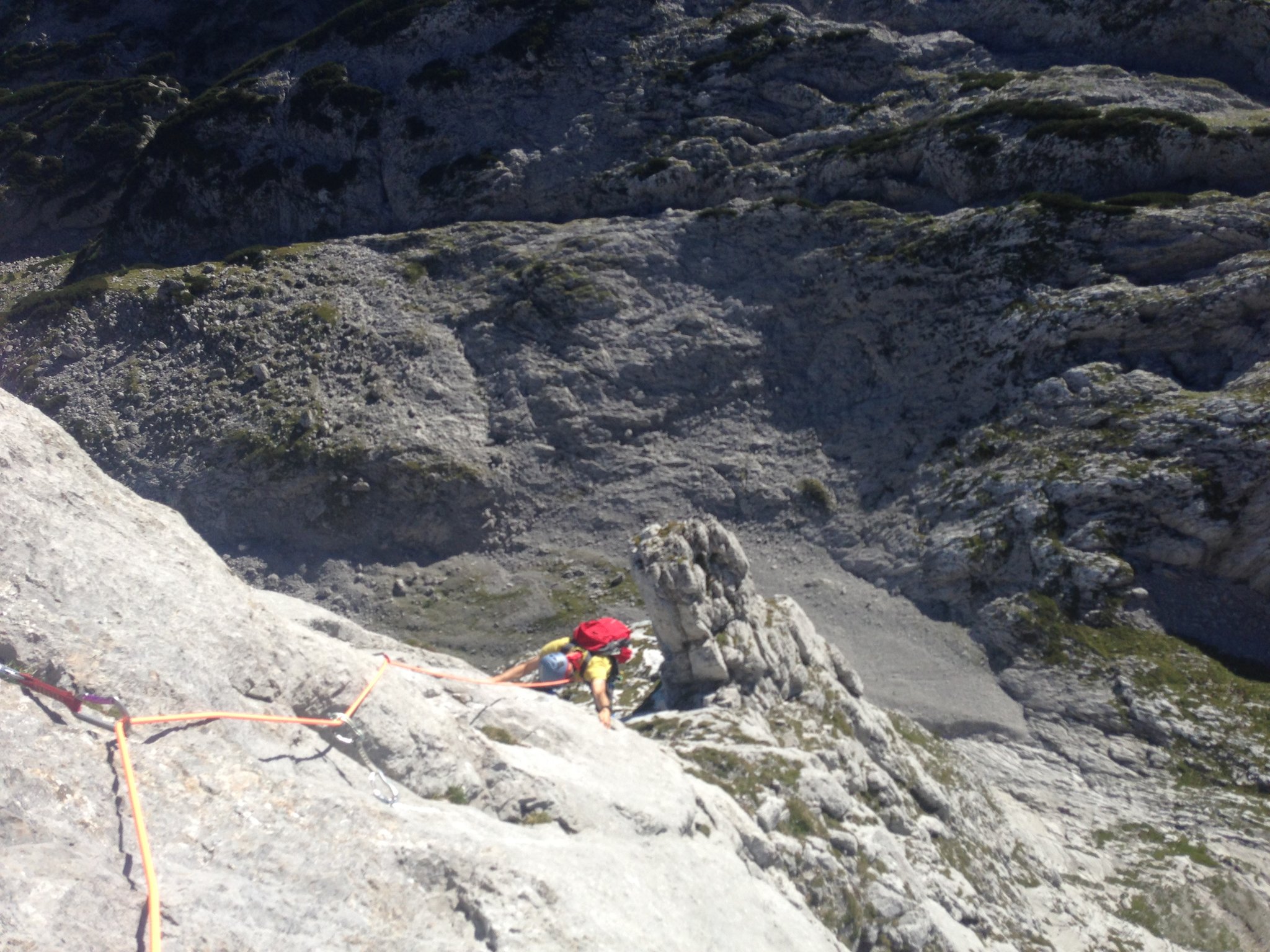 Großer und vielbegangener Klassiker über Kanten, Platten und kleinen Überhängen im kompakten Kalk, im Dachsteingebiet.