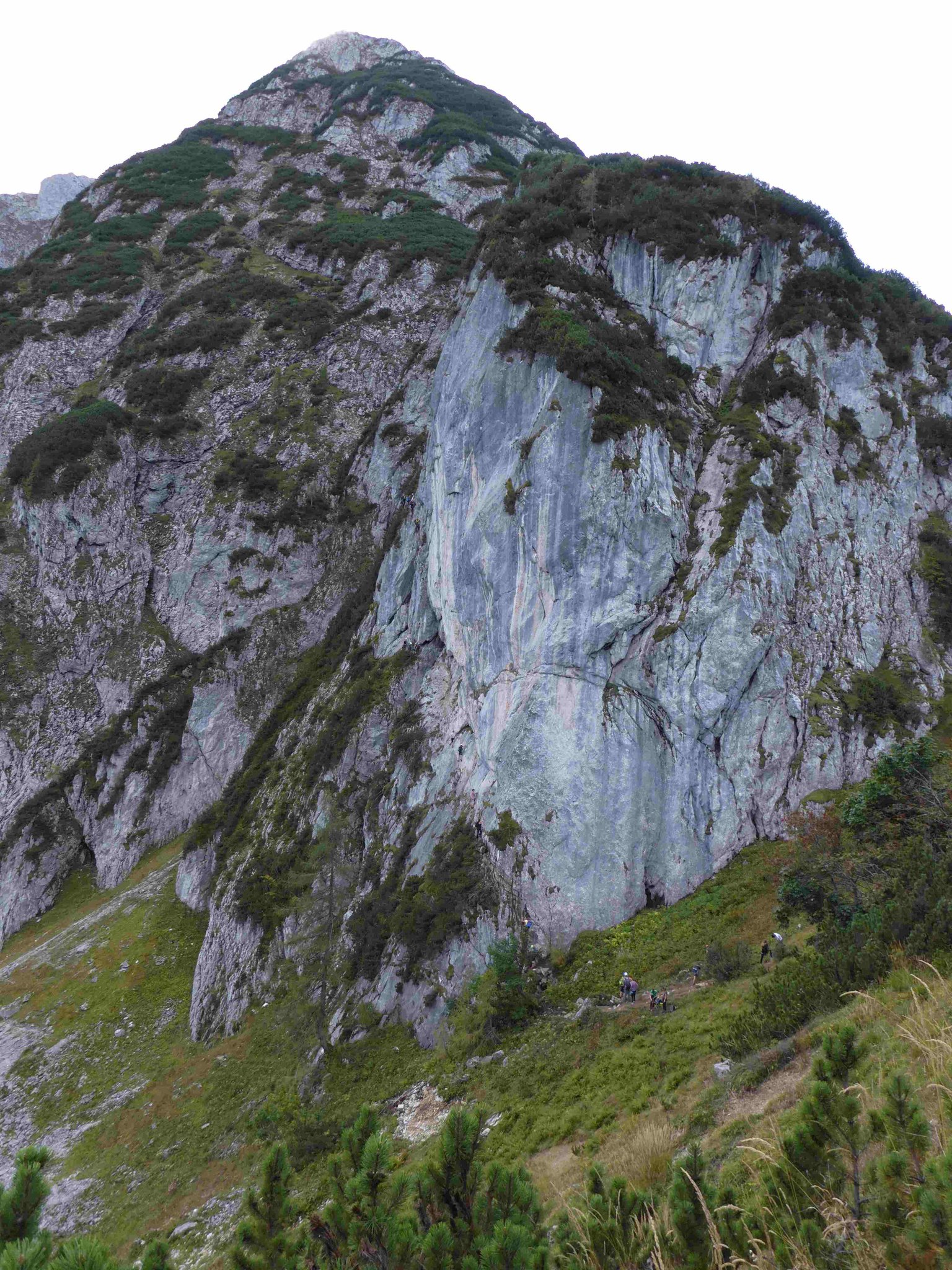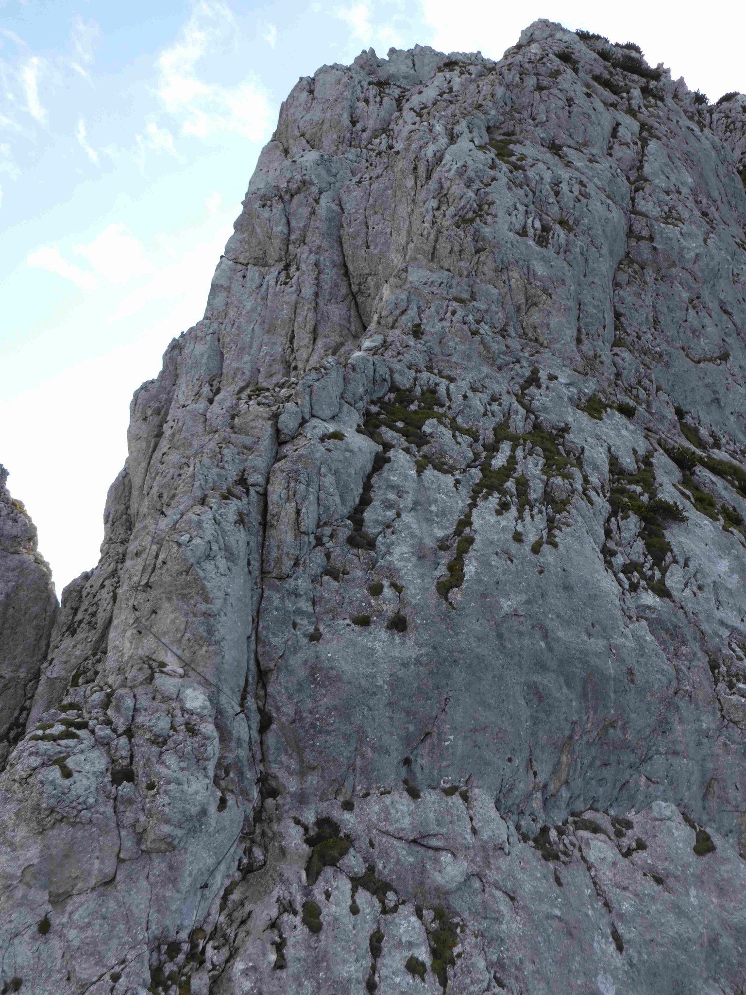 Kletterpartien: „Kaiserverschneidung“ (C/D), Plattenquerungen, Aufschwünge, Riesenleiter (40 m)