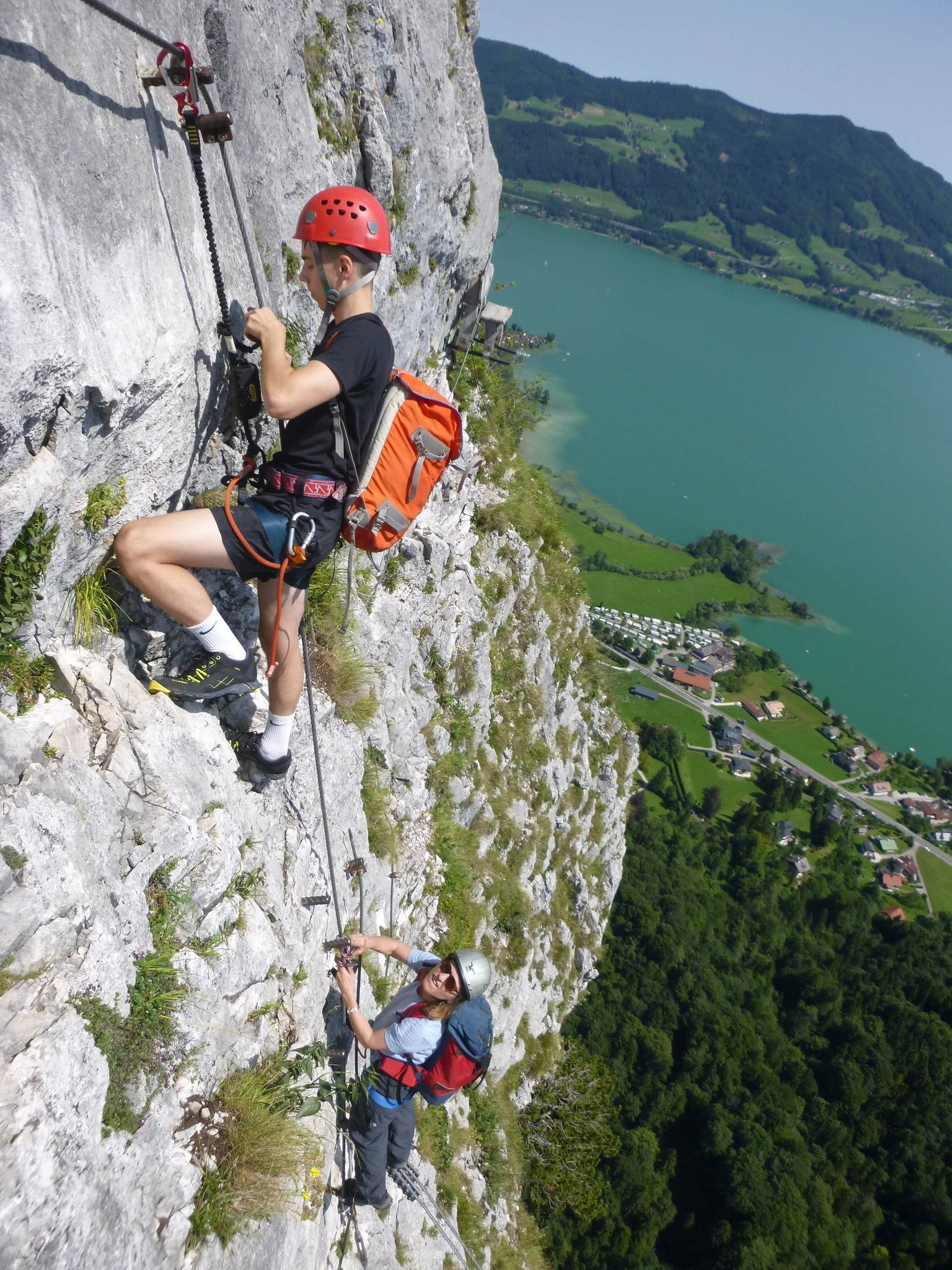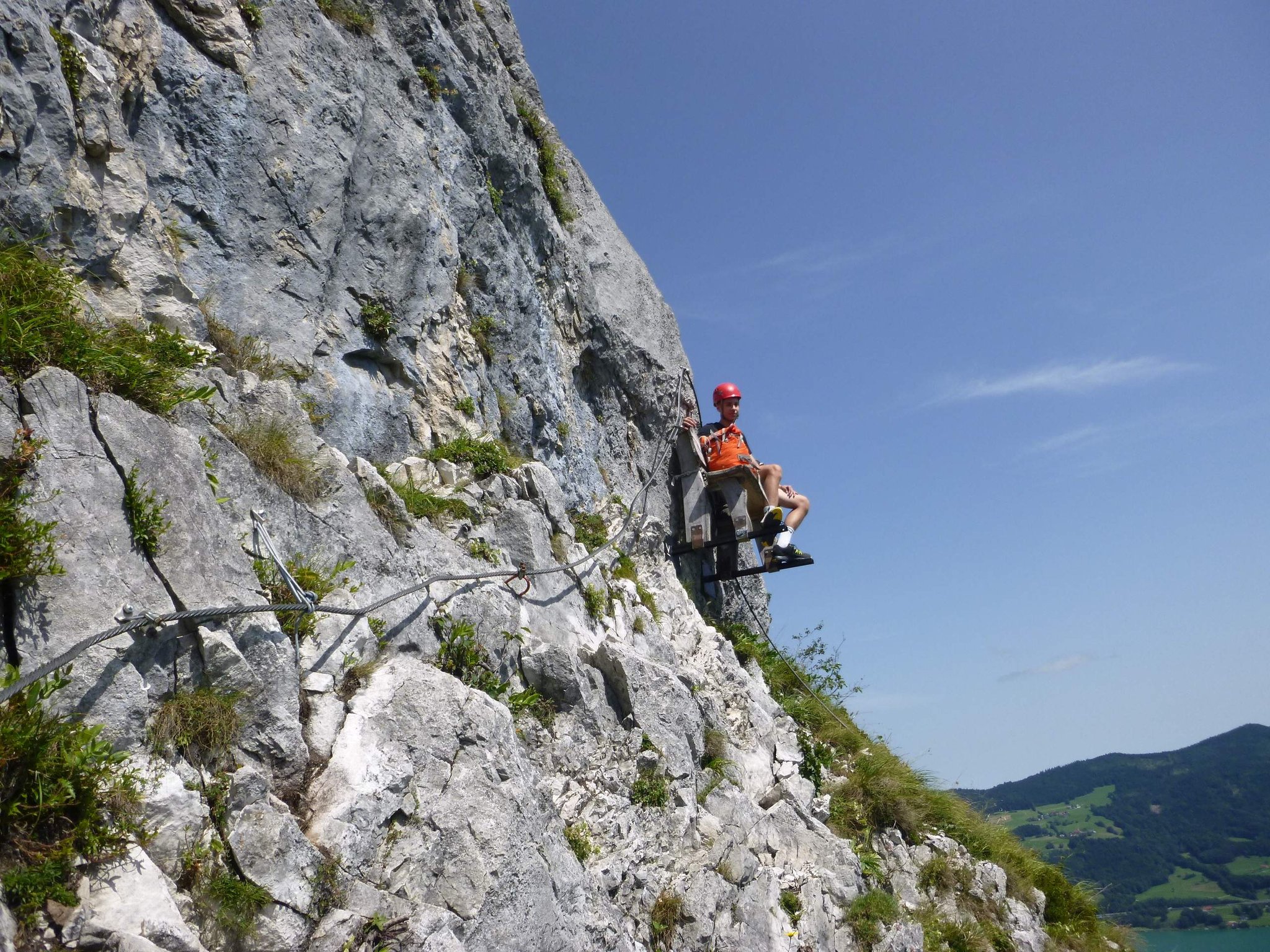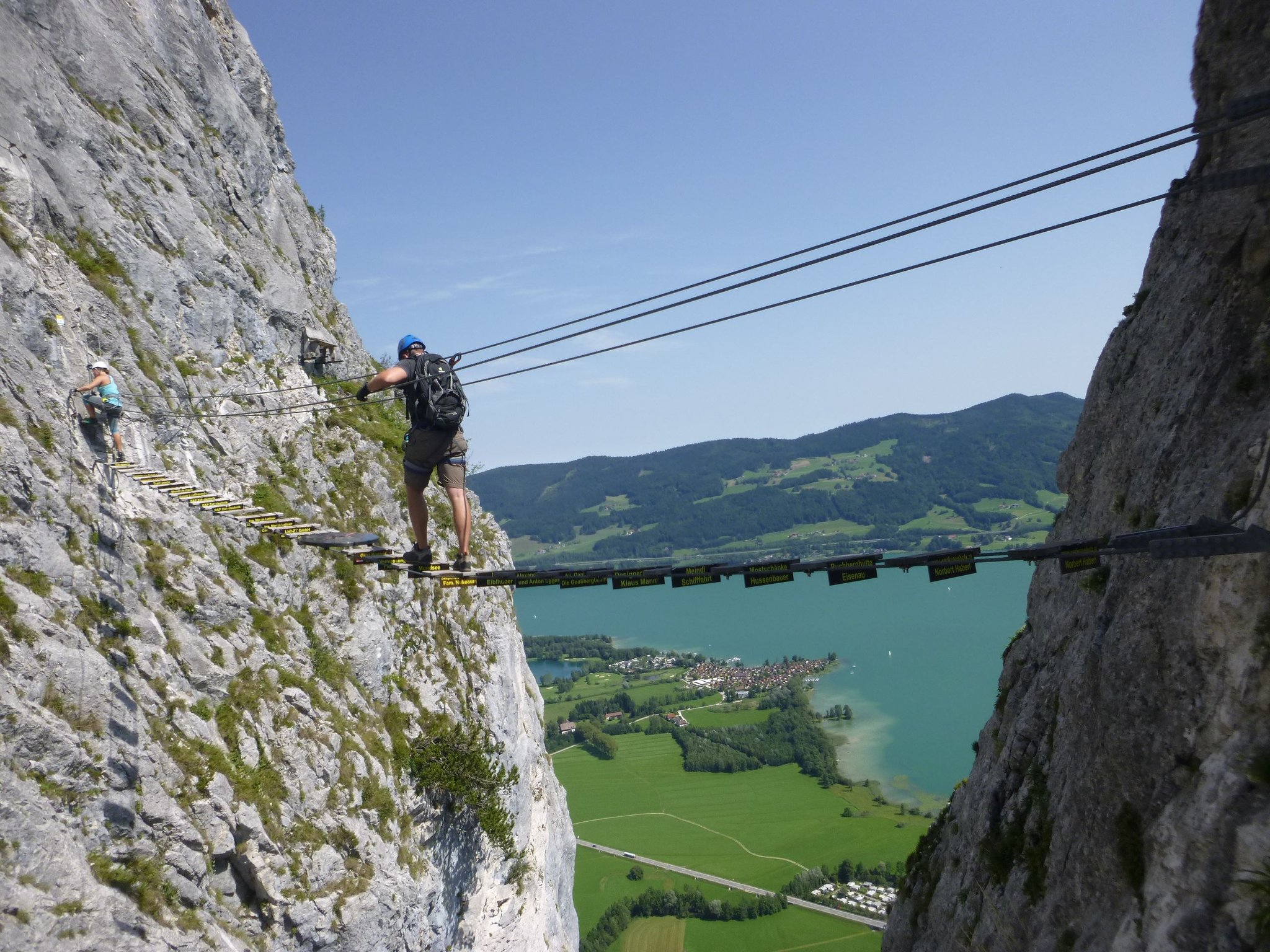 Erlebe die spektakuläre Klettersteigtour am Drachenwand Klettersteig über dem Wolfgangsee mit einem erfahrenen staatlich geprüften Bergführer. Der Drachenwand-Klettersteig ist eine der schönsten Via Ferrata-Routen im Salzkammergut und bietet beeindruckende Ausblicke auf den See und die umliegenden Berge.