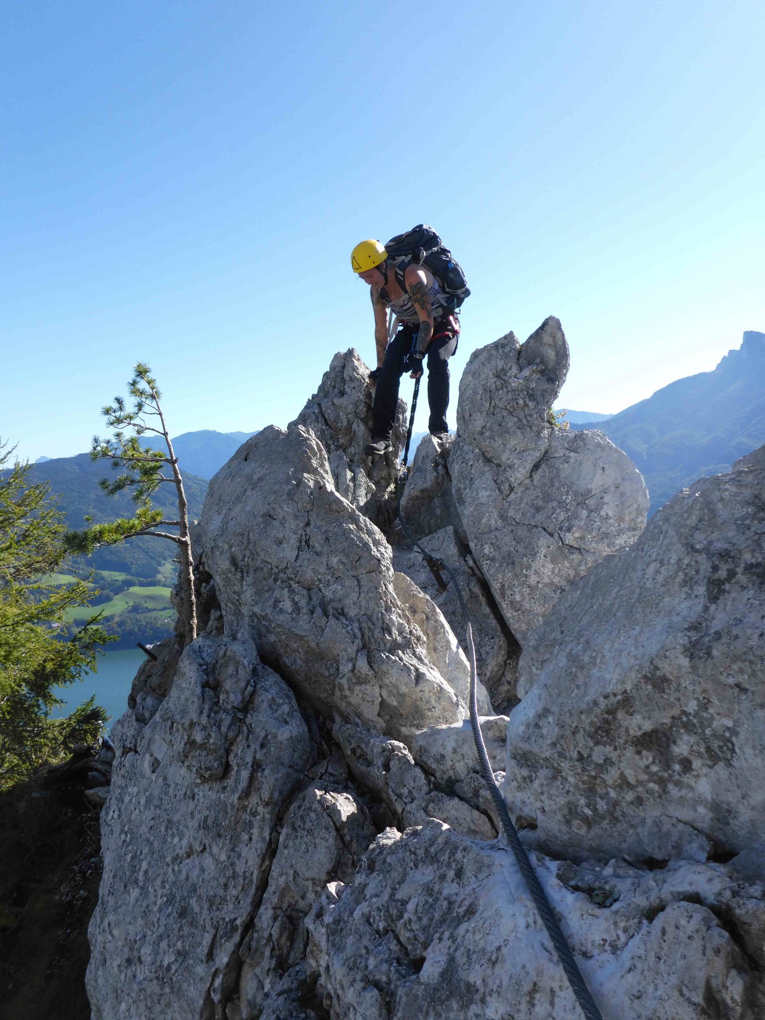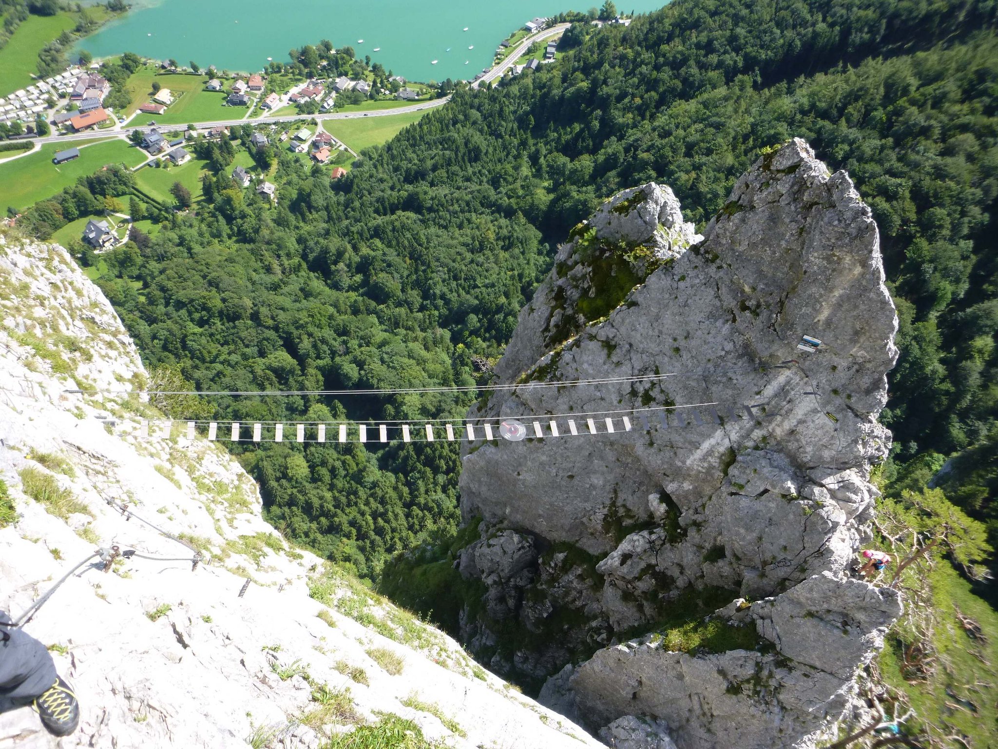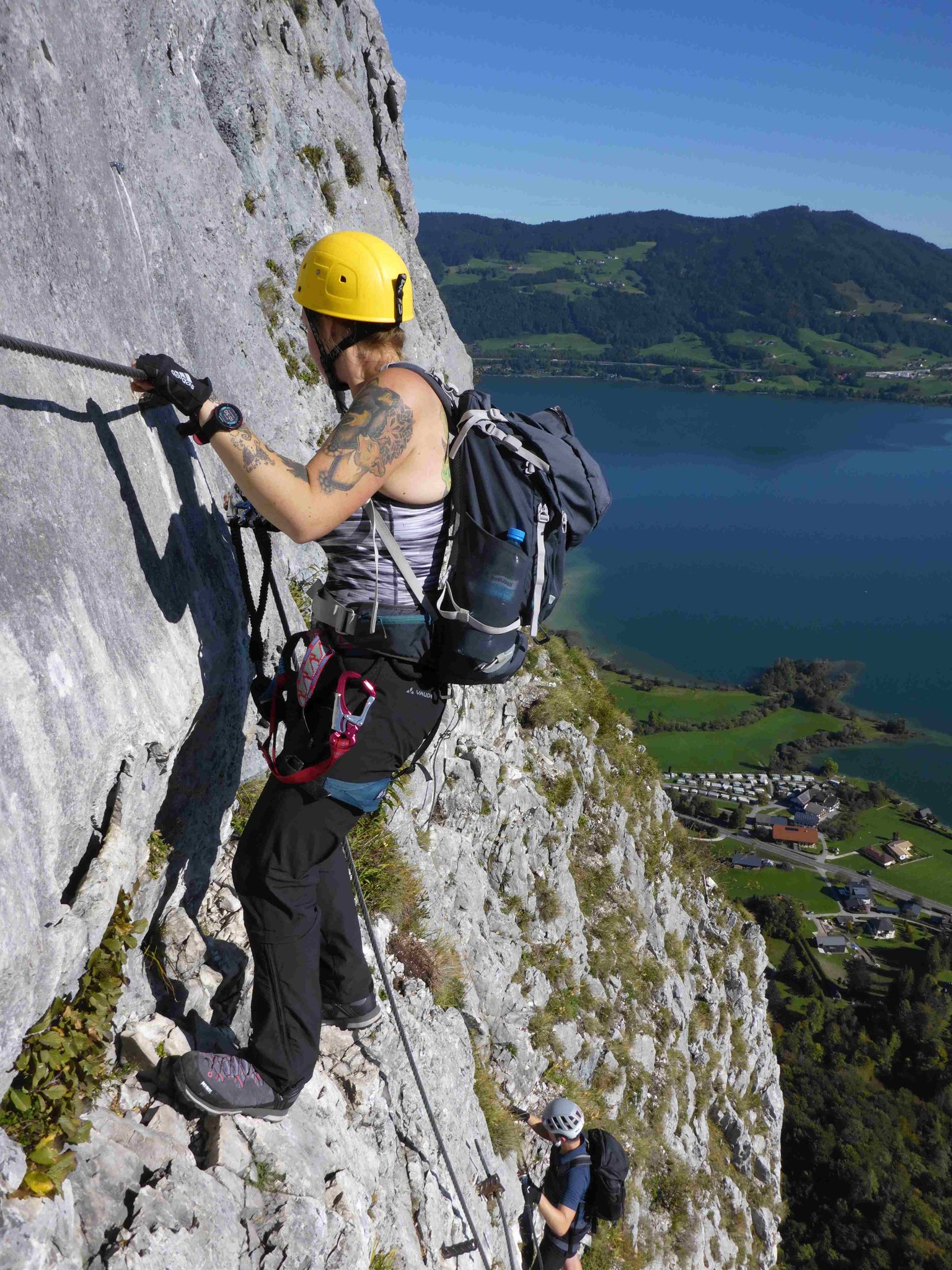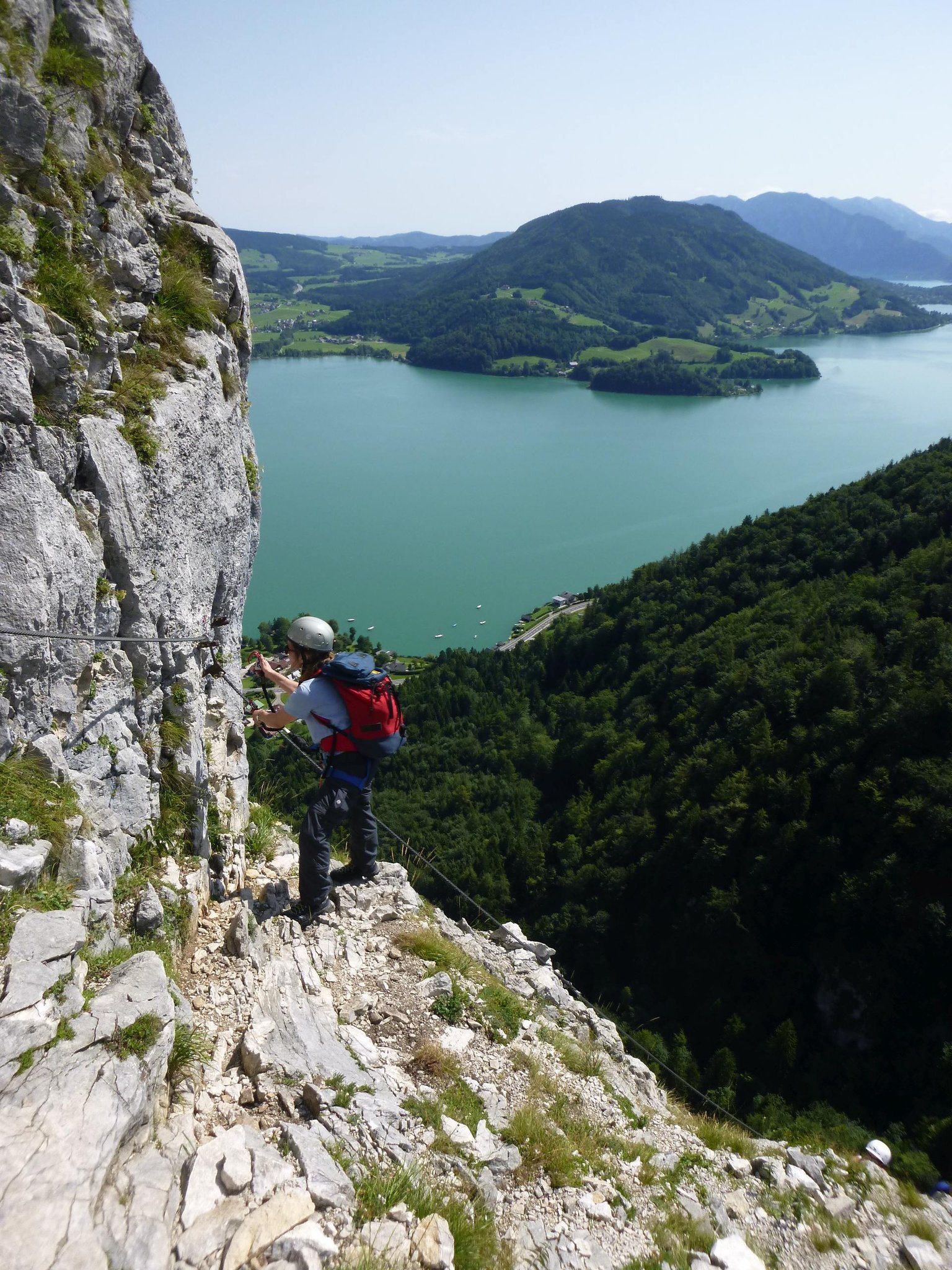 Erlebe die spektakuläre Klettersteigtour am Drachenwand Klettersteig über dem Wolfgangsee mit einem erfahrenen staatlich geprüften Bergführer. Der Drachenwand-Klettersteig ist eine der schönsten Via Ferrata-Routen im Salzkammergut und bietet beeindruckende Ausblicke auf den See und die umliegenden Berge.
