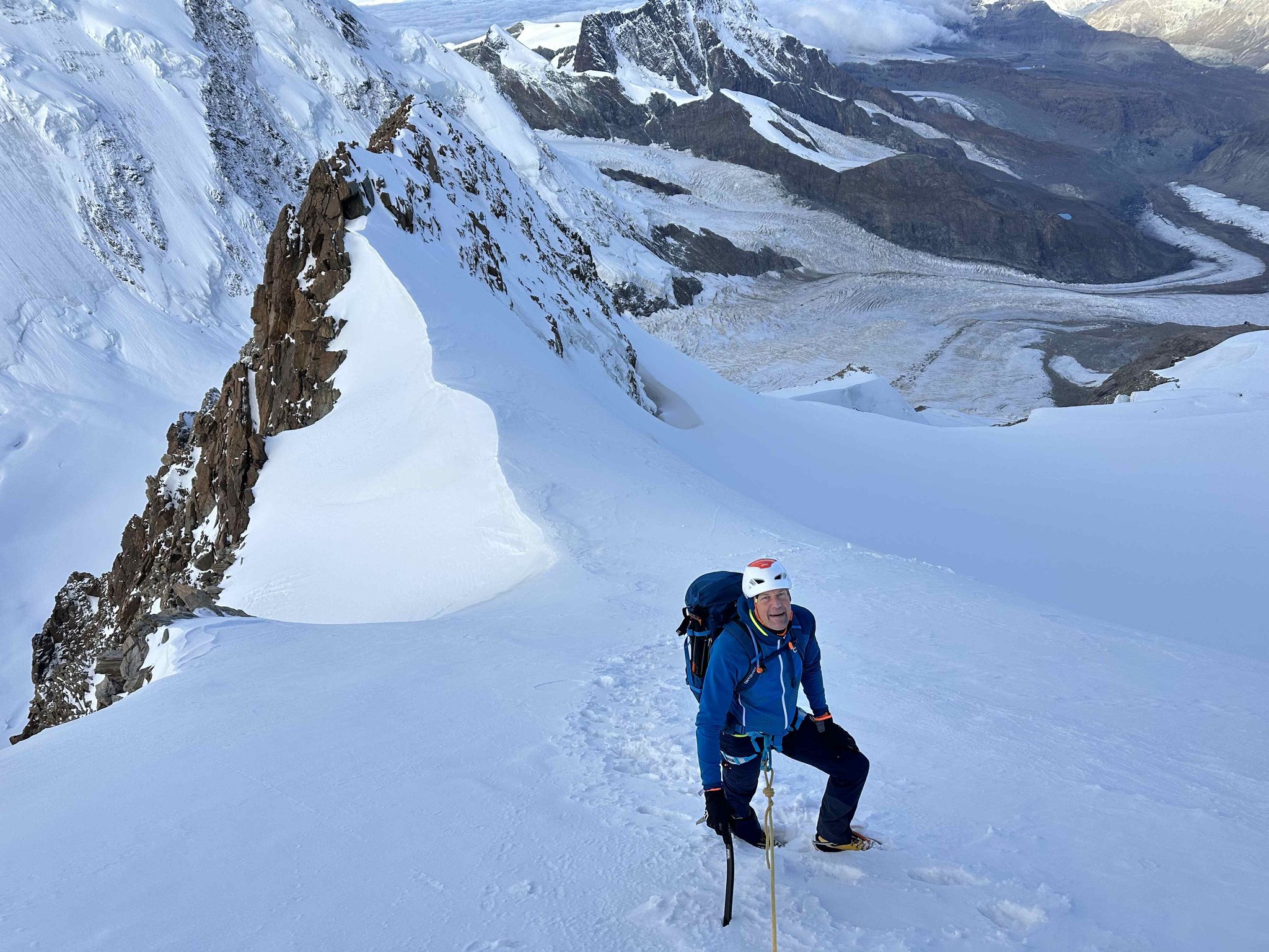 Am Rosagletscher seilen wir uns an und überwinden ein anspruchsvolles Spaltensystem. Über weitläufige Eisflächen steigen wir kontinuierlich hinauf zum Sattel, wo der technisch anspruchsvollste Teil der Tour beginnt. Die abschließende Kletterei über den Westgrat verlangt Konzentration und Trittsicherheit, belohnt jedoch mit einem unvergleichlichen Gipfelerlebnis.