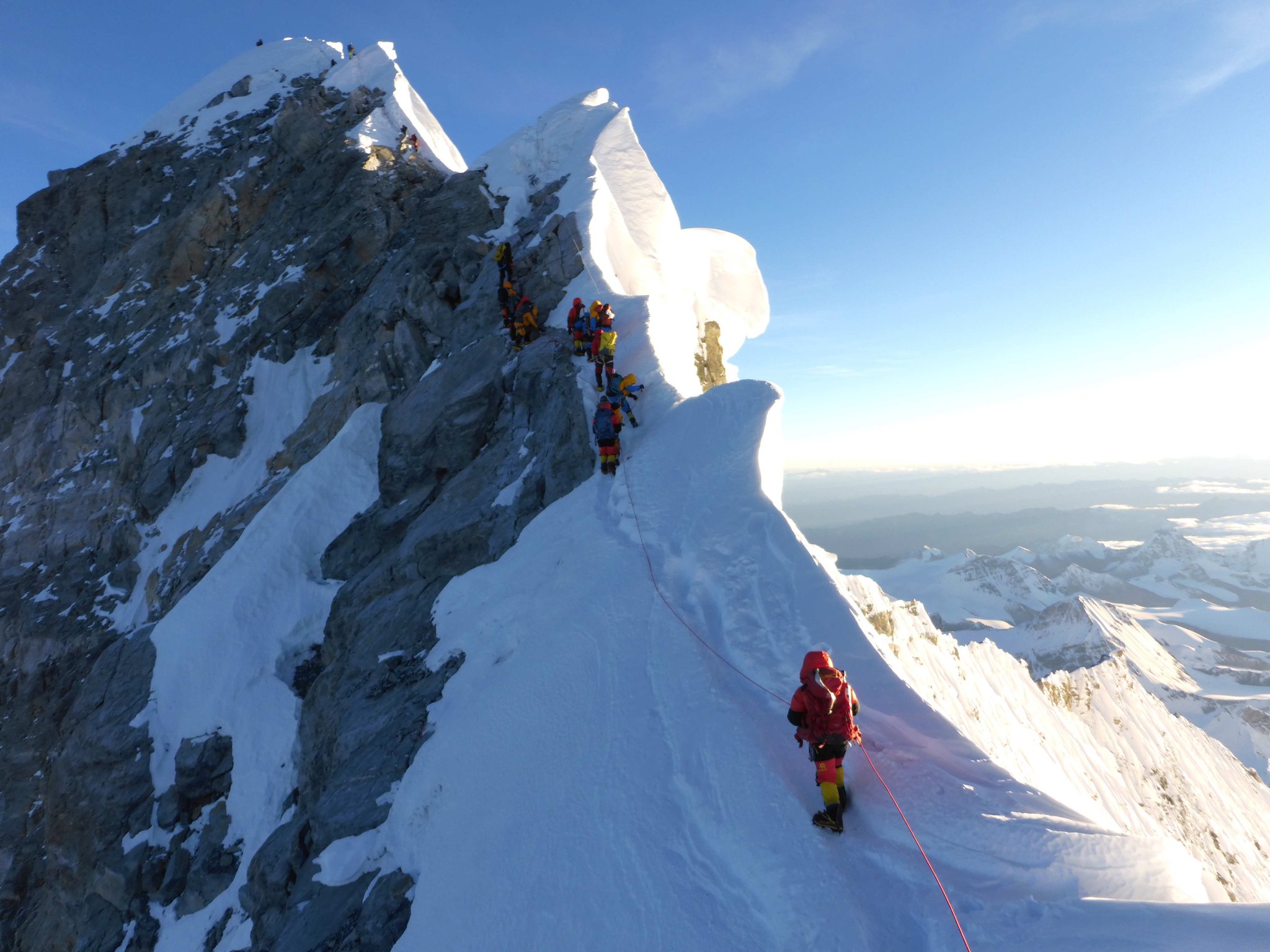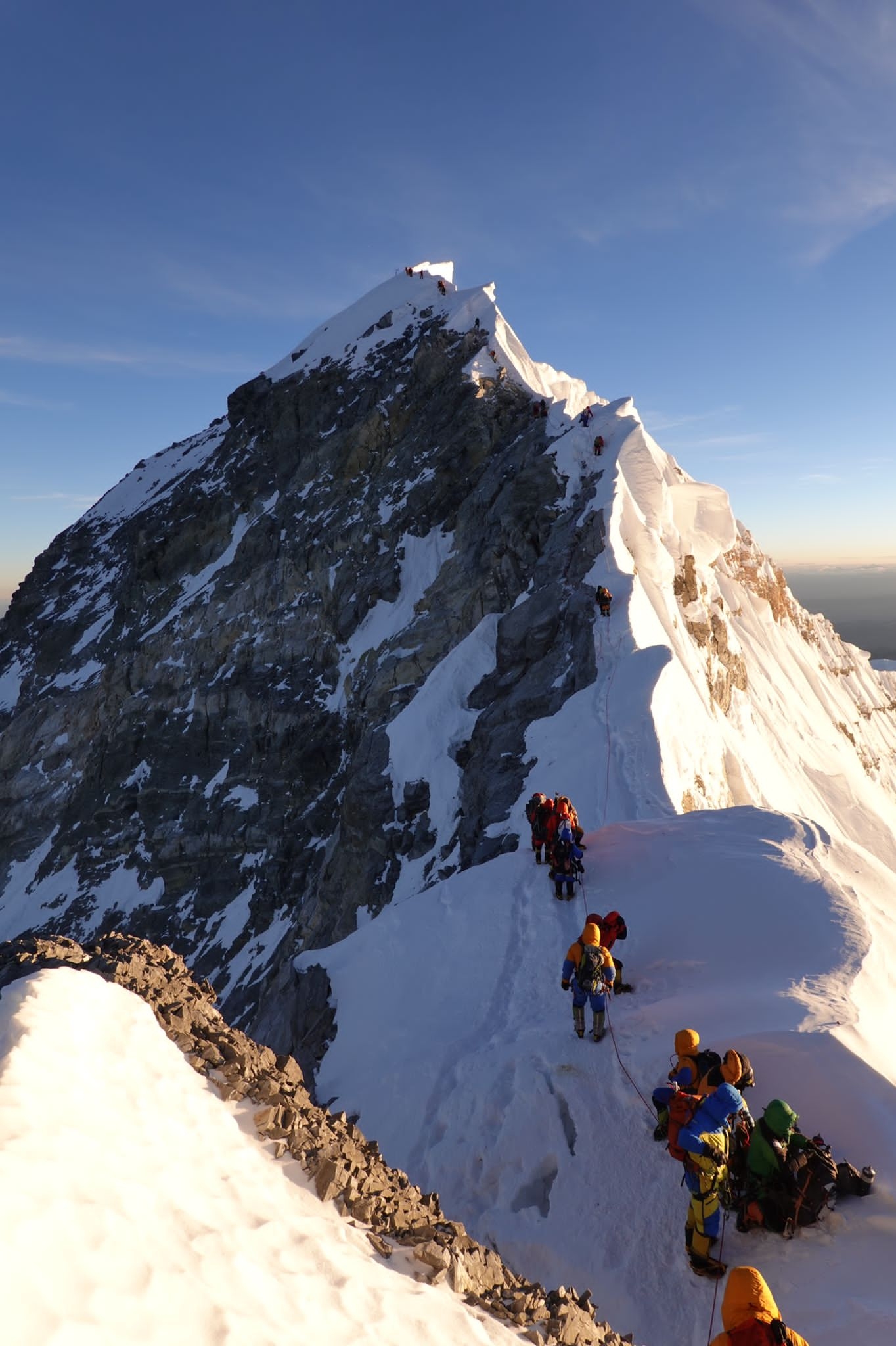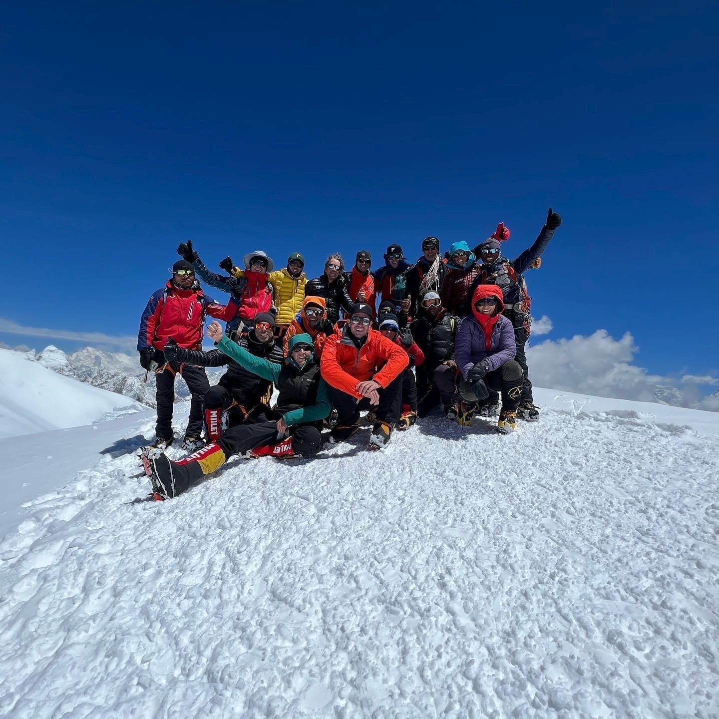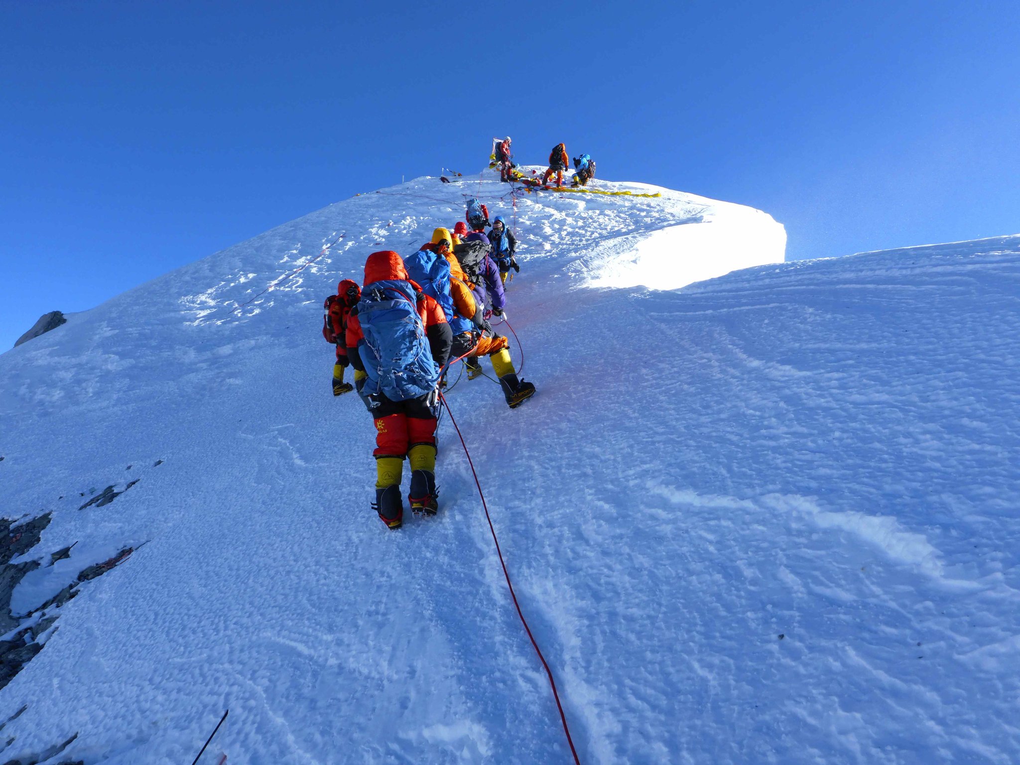 Am Freitag, den 13., haben alle 17 Mitglieder (darunter der älteste Brite, der den Everest bestiegen hat) unter perfekten Bedingungen zusammen mit 27 der besten Sherpas der Welt den höchsten Berg der Erde bestiegen. Nur 16 Tage nach dem Verlassen von Kathmandu und nur einmal durch den Khumbu-Eisfall. Durch eine disziplinierte Vorakklimatisation zu Hause konnte dieser bisher einmalige Erfolg erreicht werden.