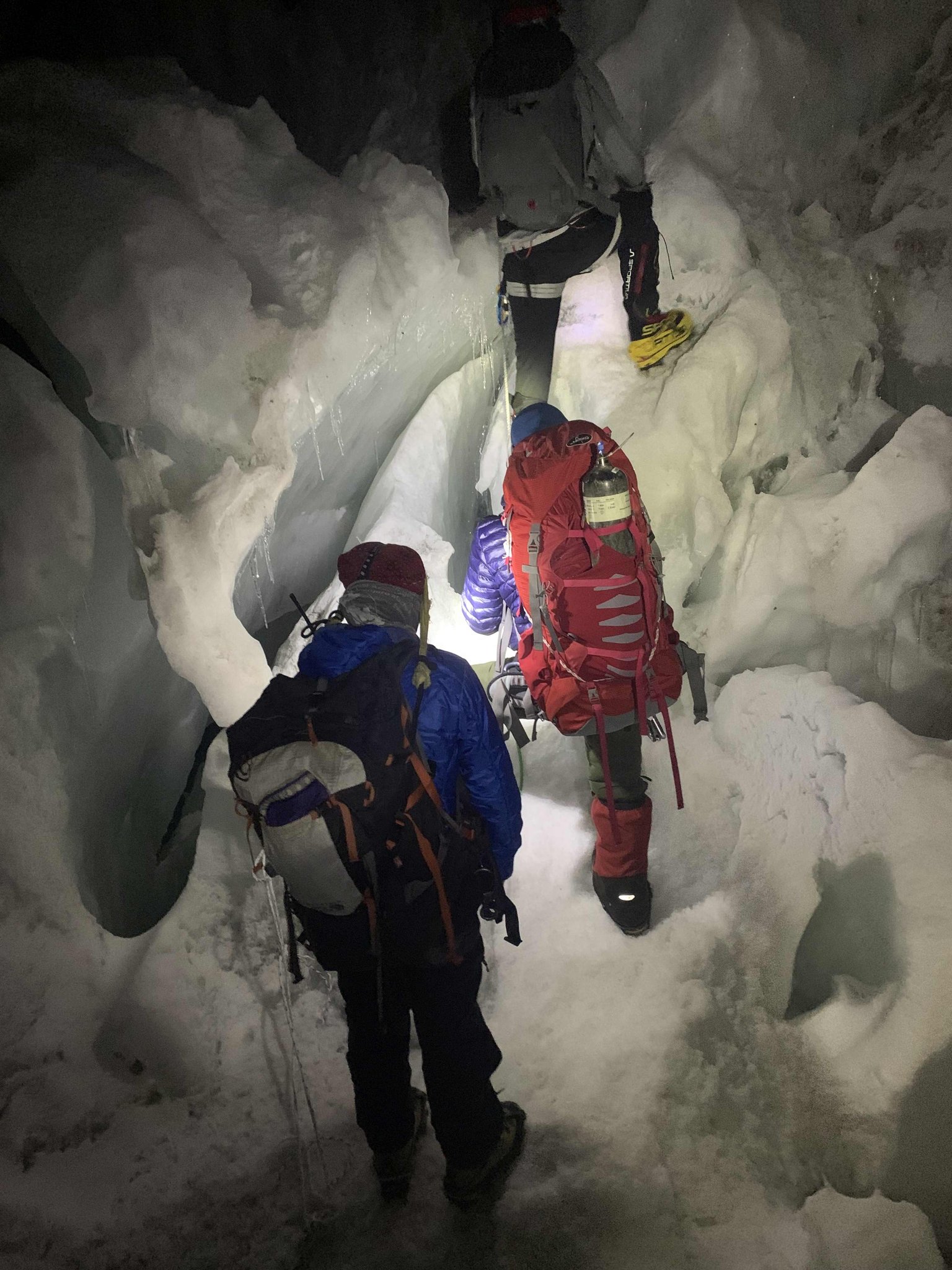 Das gesamte Sauerstoffsystem wird für jeden Teilnehmer komplett redundant mitgeführt und am Berg deponiert. Auf jeden Teilnehmer kommen mindestens 2 Sherpas, um Ausfälle von Sherpas kompensieren und die großen Sauerstoffmengen transportieren zu können.