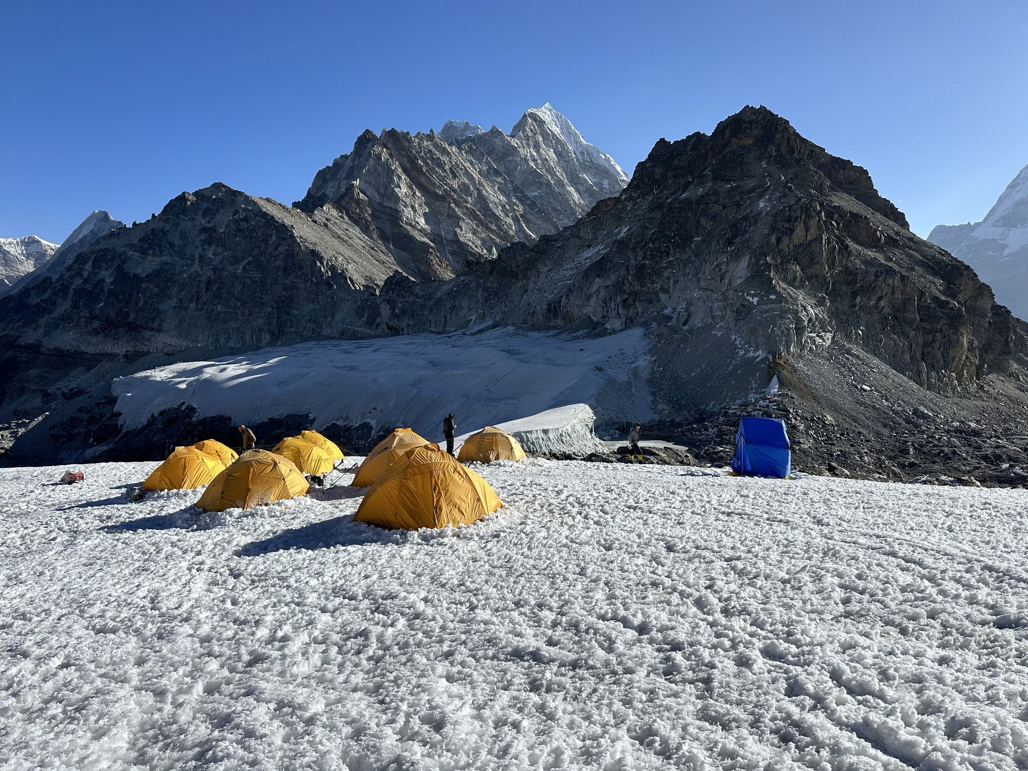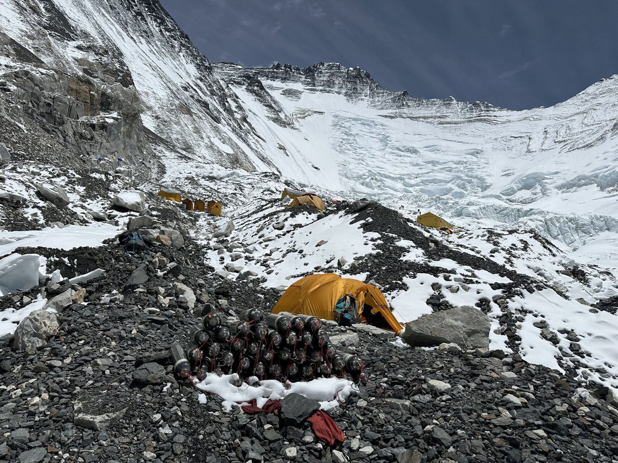 Die Sherpas richten schon im Vorhinein die Hochlager und Sauerstoffdepots ein. Sobald das Wetterfenster passt, kann der Gipfelanstieg beginnen.