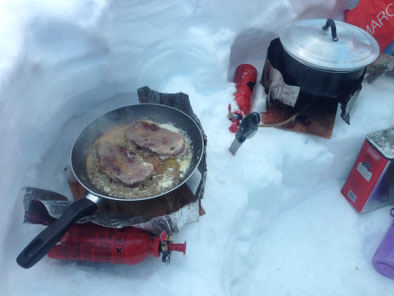 Noch ein kräftiges Steak vor dem Aufstieg ins Lower Camp.