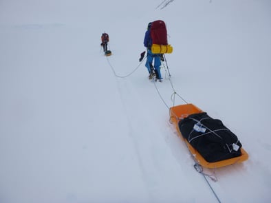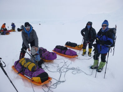 Das Gepäck wird mittels Schlitten transportiert.