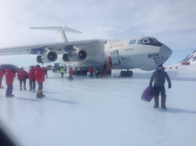 Die Ilyushin wird für den Transport von Passagieren und Fracht zwischen Punta Arenas in Chile und der Antarktis eingesetzt. Der robuste, vier motorige russische Jet eignet sich gut für Landungen auf Rädern auf dem Eis des Union Gletscher in der Antarktis.