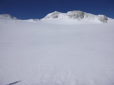 Vom Basislager auf 2200 m auf der Westseite der Ellsworth Mountains steigt die Route auf etwa 8 km 700 Höhenmeter durch das enge Tal des Branscomb Gletschers an den Fuß der 1800 m hohen Mt. Vinson Westwand an.