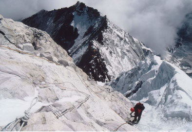 Ca 55 Grad Blankeis und anschließend eine ebenso steile Firnflanke führte zum Gipfel der AmaDablam 11.Mai