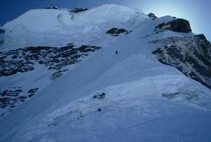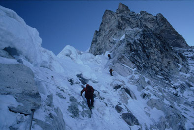 danach auf Schnee und Eis (ca 55 Grad) erreicht man den Gipfel.