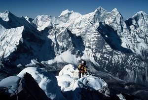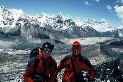 Im Hintergrund: Mt. Everest (8.848 m) und Lhotse (8.516 m)