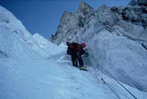 Oberhalb Lager 2 erwartete uns fels- und eiskombiniertes Gelände