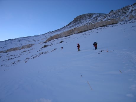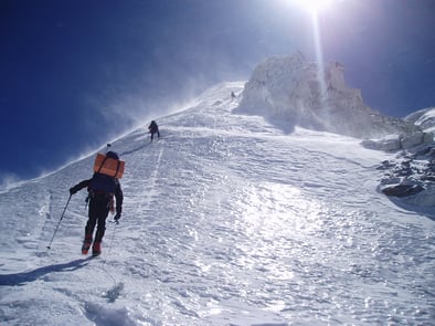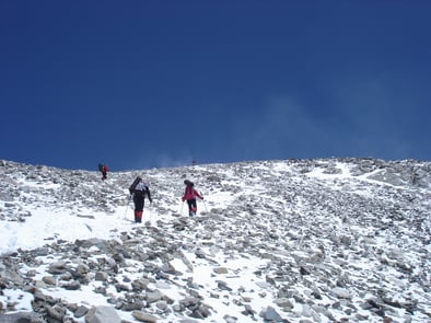 Gipfelaufstieg - im Hintergrund "Gelbes Band" - 7.400 m
