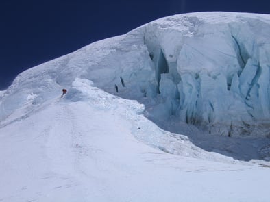 6.400 m - Viel Blankeis entlang der Aufstiegsroute, der Grund dafür war die nahezu niederschlagsfreie Vormonsumzeit