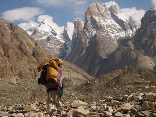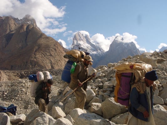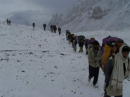 Mit uns unterwegs - 97 Balti, 2 Köche und ein Hochträger, die die Ausrüstung und Verpflegung für unseren 32-tägigen Aufenthalt im Basislager trugen.