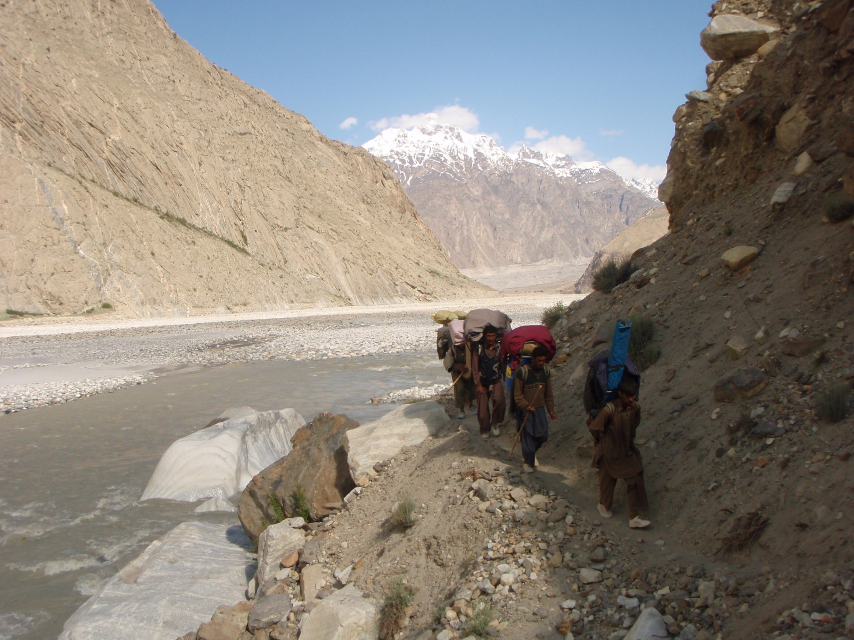 Über Jhola (3025 m) führt der Weg zunächst am Braldu entlang bis Paiju (3370 m), einer grünen Insel, schon mit Blick auf die