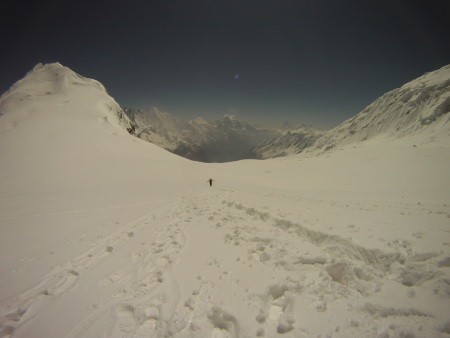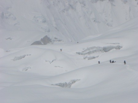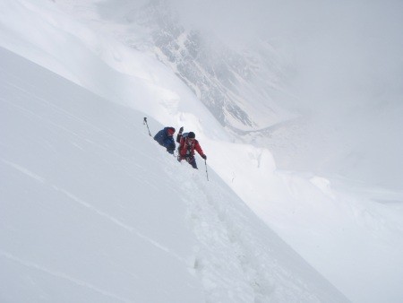 4 Wochen täglicher Schneefall im Basislager, mehr als 4 Meter Schnee auf über 5.700 m, sekundenlange Blitze und hell erleuchtete Naächte, Staub- und Schneebrettlawinen von Dimensionen die ich bisher noch nie erlebt