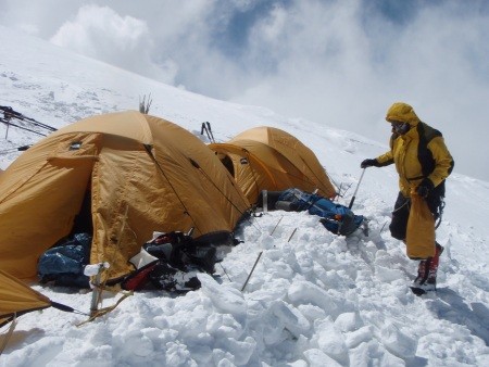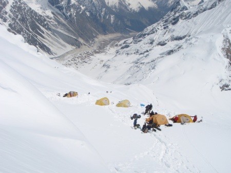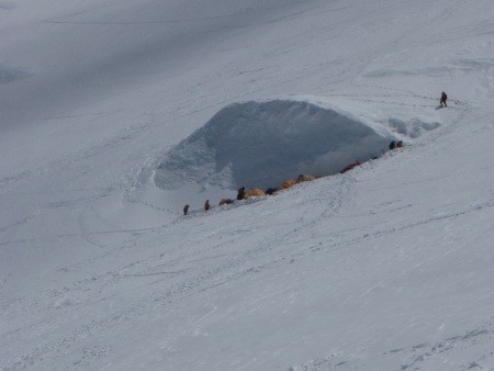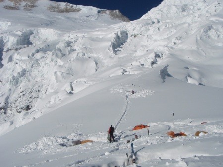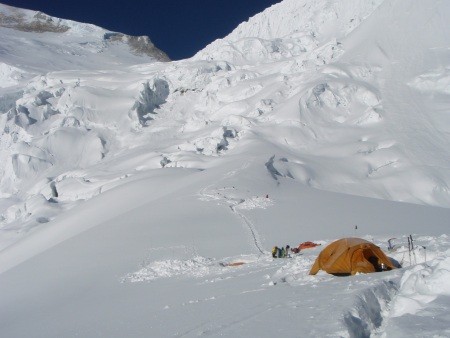 Hochlager 1 - 5.730 m mi im Hintergrund weiterer Aufstiegsroute durch den Eisbruch