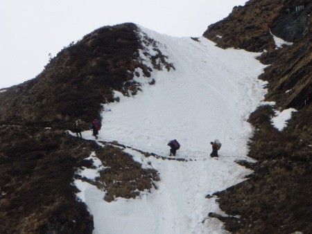 heute übliche Normalroute gefunden war. Obwohl technisch nicht allzu anspruchsvoll, erfordert der nordostseitige Aufstieg über den Naike-Col und