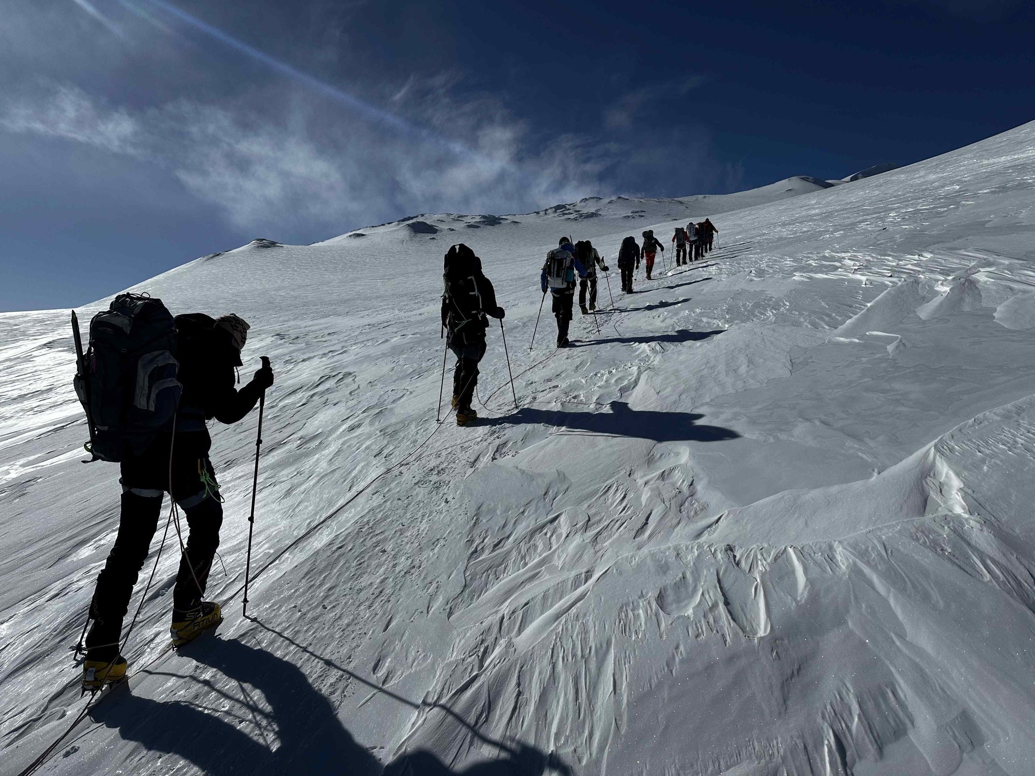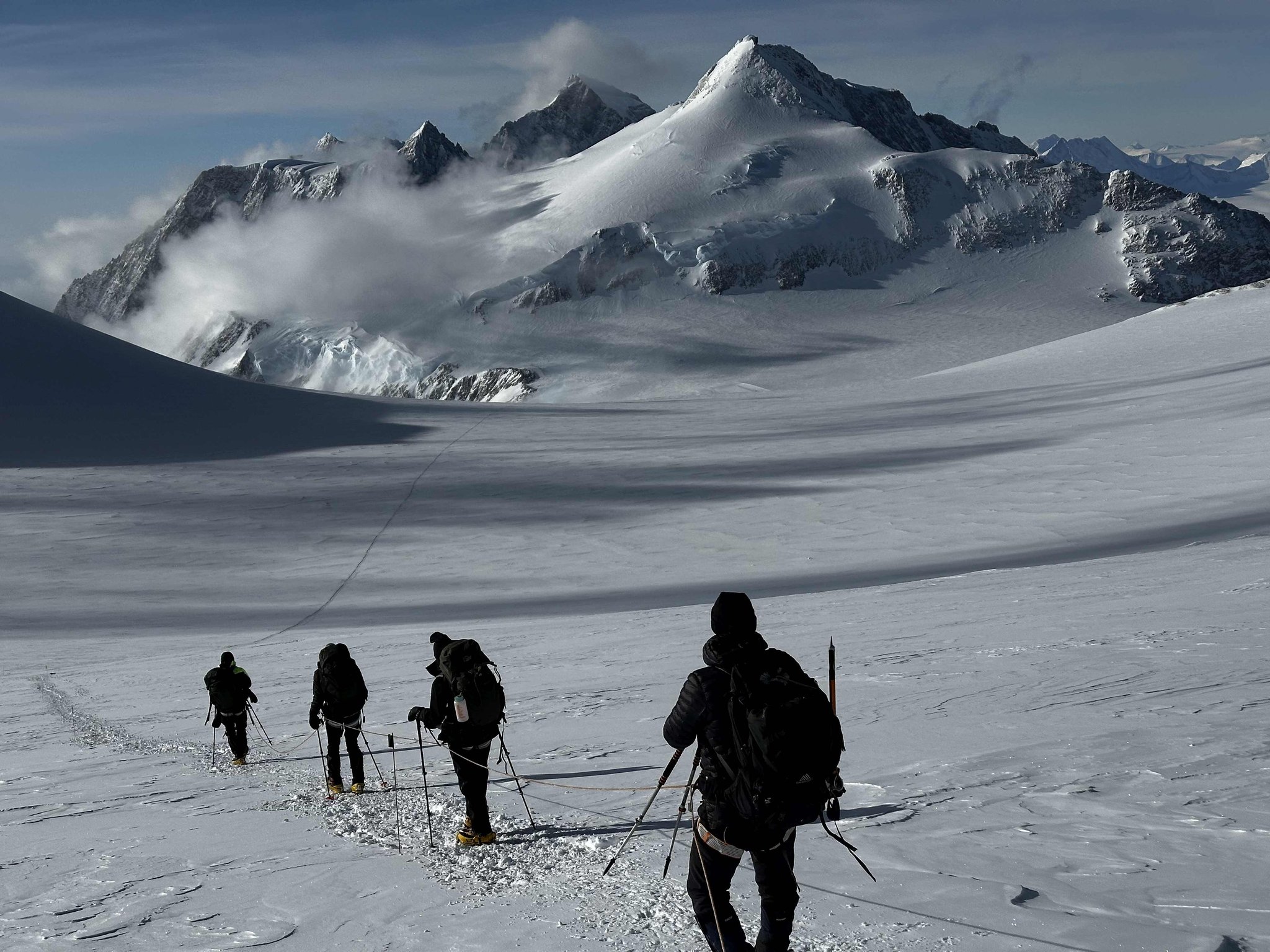 Und auch wenn sich die Ausrüstung seit damals doch enorm verbessert hat und unser erfahrener UIAGM-Bergführer für zusätzliche Sicherheit sorgt, bleibt der Vinson das auch – eine bergsteigerische Herausforderung an das eigene Können, die Fitness und auch die mentale Stärke. Denn Temperaturen unter -30°C, teils sehr heftige Stürme und die Eigenheiten der Standardroute „Branscomb Shoulder“, wie beispielsweise Eisklettereien, Schneehänge bis zu 45° Neigung und ein exponiertes Hochplateau zehren doch an den Kräften eines jeden Bergsteigers.