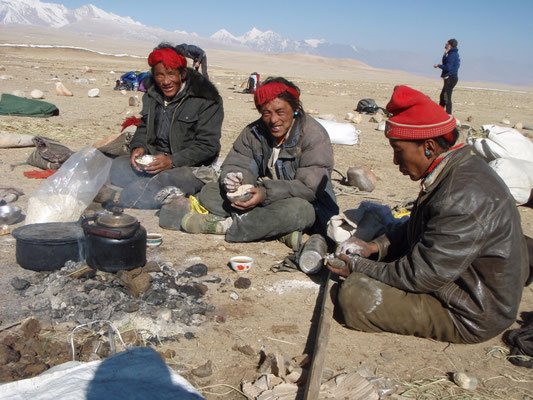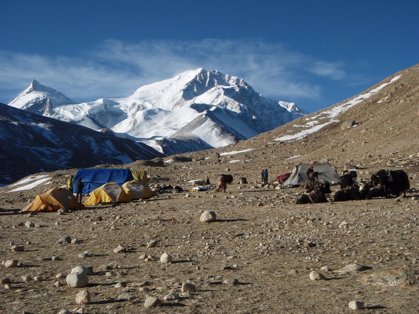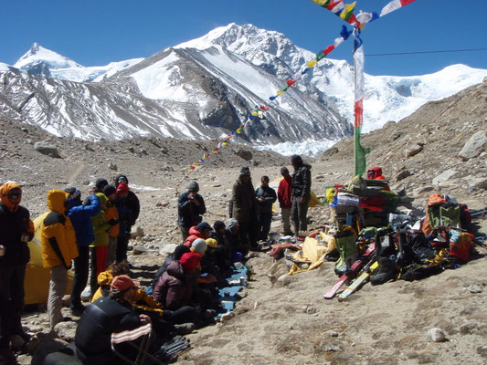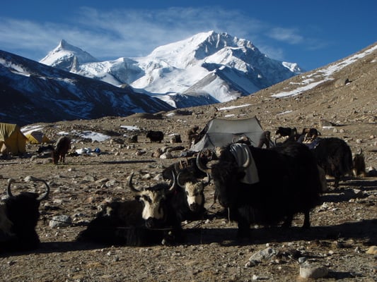 Nach 2 Tagesetappen wird das eigentliche Basislager auf einer Höhe von 5650 m mit der Hilfe von 58 Yaks die mehr als 2.300 kg Verpflegung und Ausrüstung hochtrugen, in einer Gehstrecke von mehr als 25 km, erreicht.