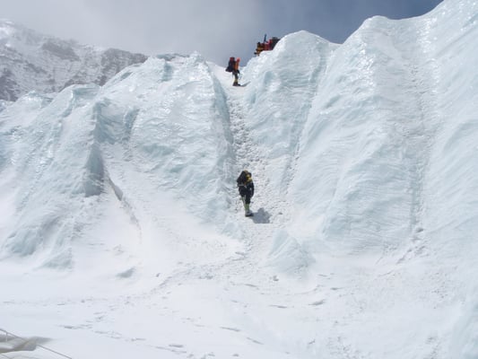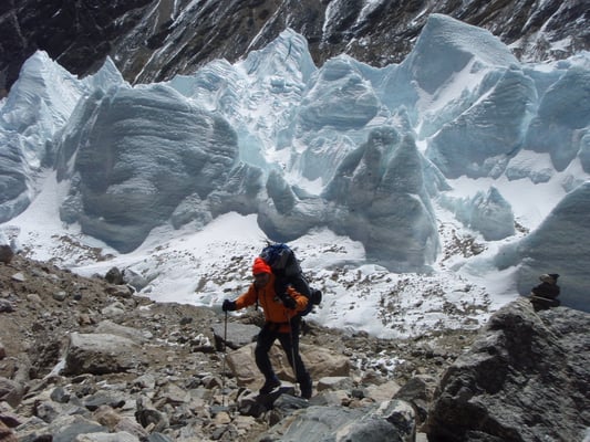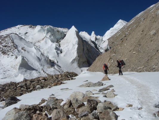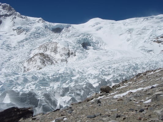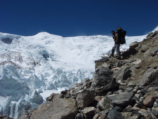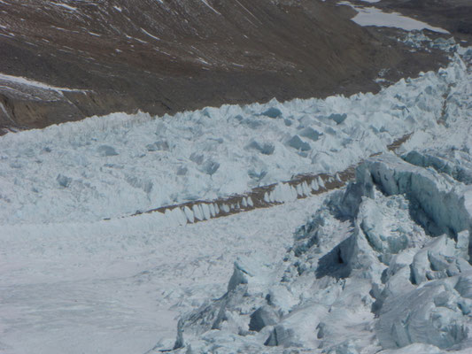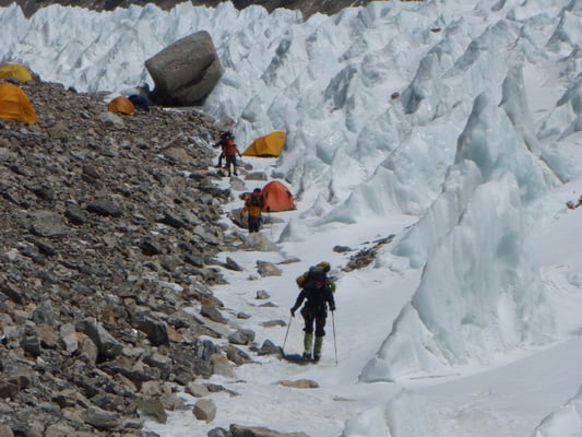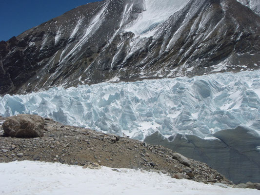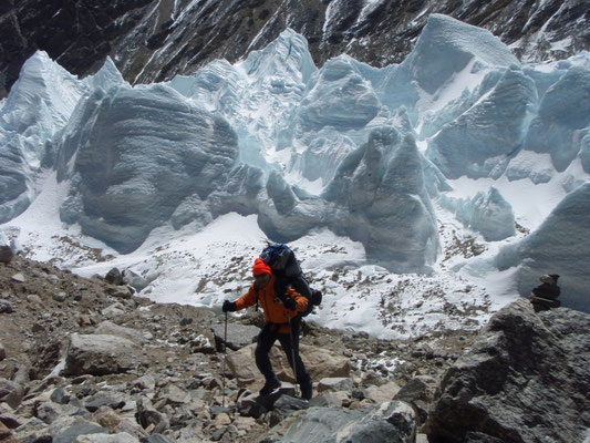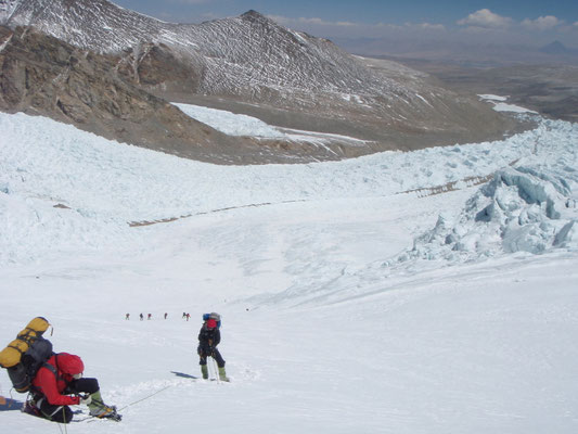 Beim weiteren Aufstieg wird erst ein Moränenlager (Depot) auf 5.850 m eingerichtet.