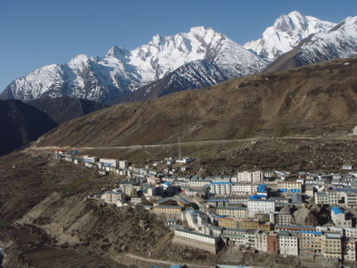 Die Anreise erfolgte mit Bus und Jeeps hoch nach Nyalam (3750 m),Tibet, wodie nächsten drei Nächte zur besseren Akklimatisation verbrachtwurden. Hier wurden auch zweiWanderungen bis in Höhen um 5000 m unternommen.