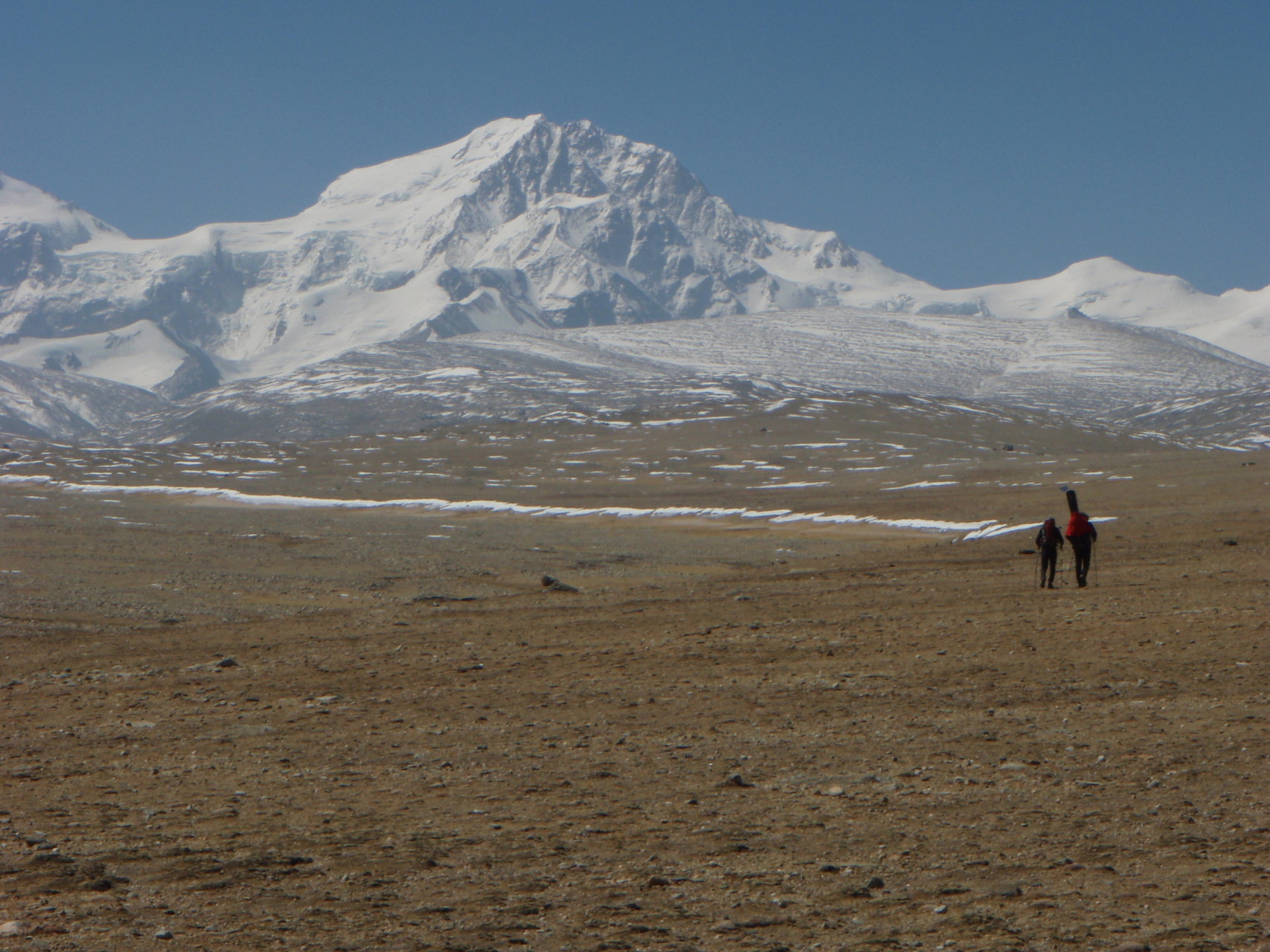 Der Shisha Pangma ist der einzige gänzlich auf tibetischem Boden gelegene 8000er. Bis zum unteren, 5000 m hoch gelegenen Basislager kann wie am Cho Oyu mit Jeeps gefahren werden - danach sind die Distanzen von Lager zu Lager recht weit. Da sich die Route zunächst über wenig steiles Gelände bewegt, ist sie auch ideal, um sich mit Tourenskiern fortzubewegen. Unsere
