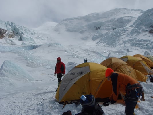 ABC-Lager 5.630 m (Hintergrund Shisha Pangma)