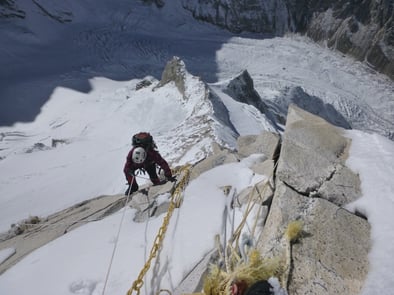 Mehrere Tage benötigten wir, um die schwierigsten Passagen des Westgrates abzusichern.