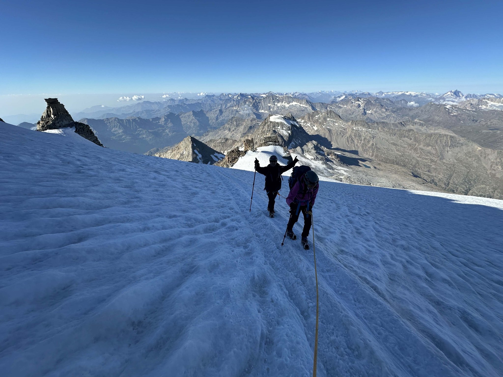 Am Gipfel erwartet uns ein atemberaubender Rundblick über die Westalpen.