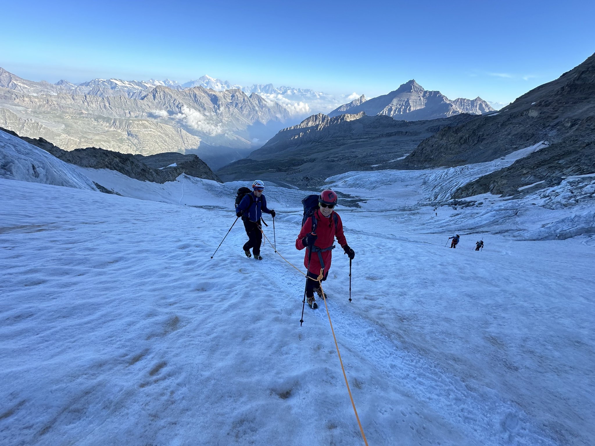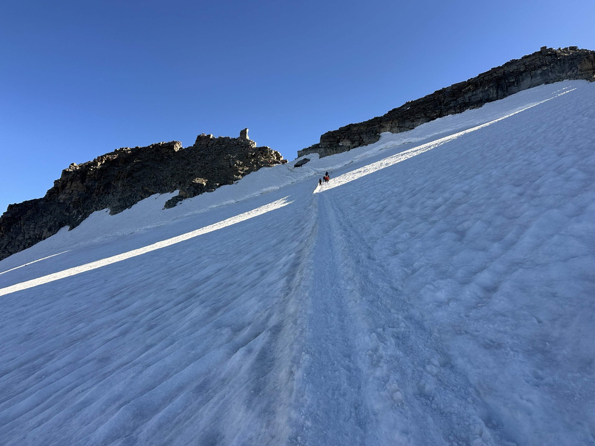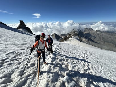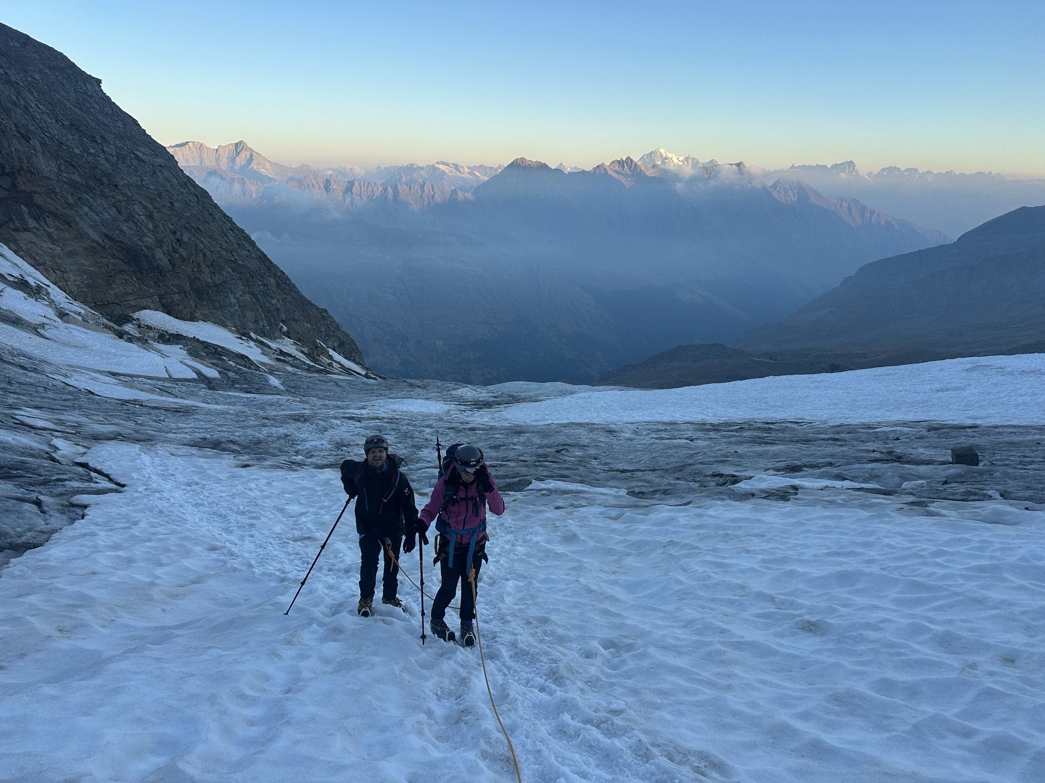 Früh am Morgen starten wir zur Gipfelbesteigung des Gran Paradiso. Über den Gletscher, vorbei an eindrucksvollen