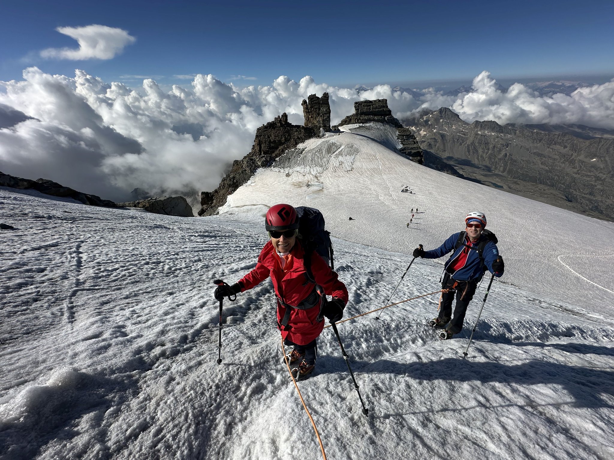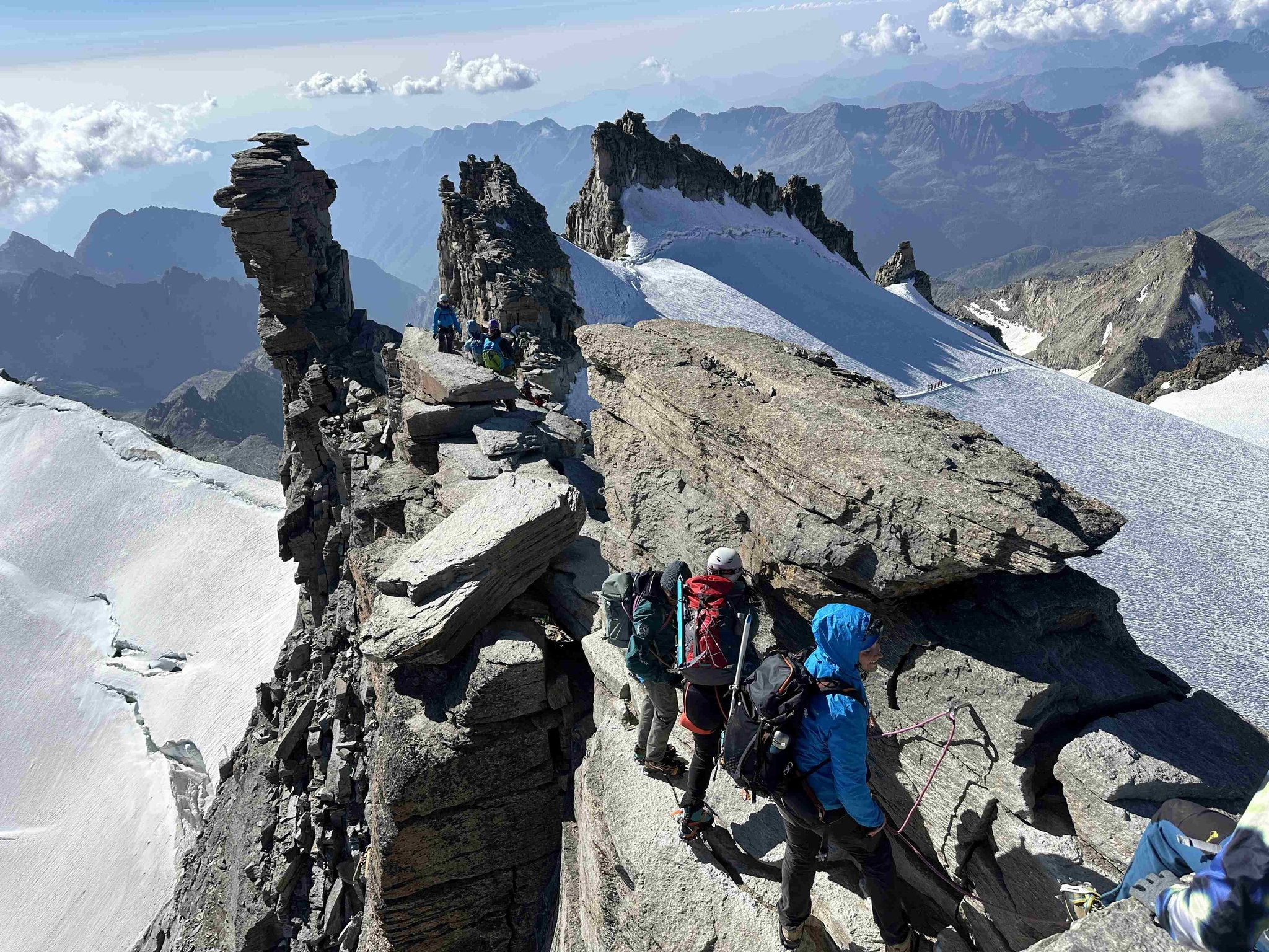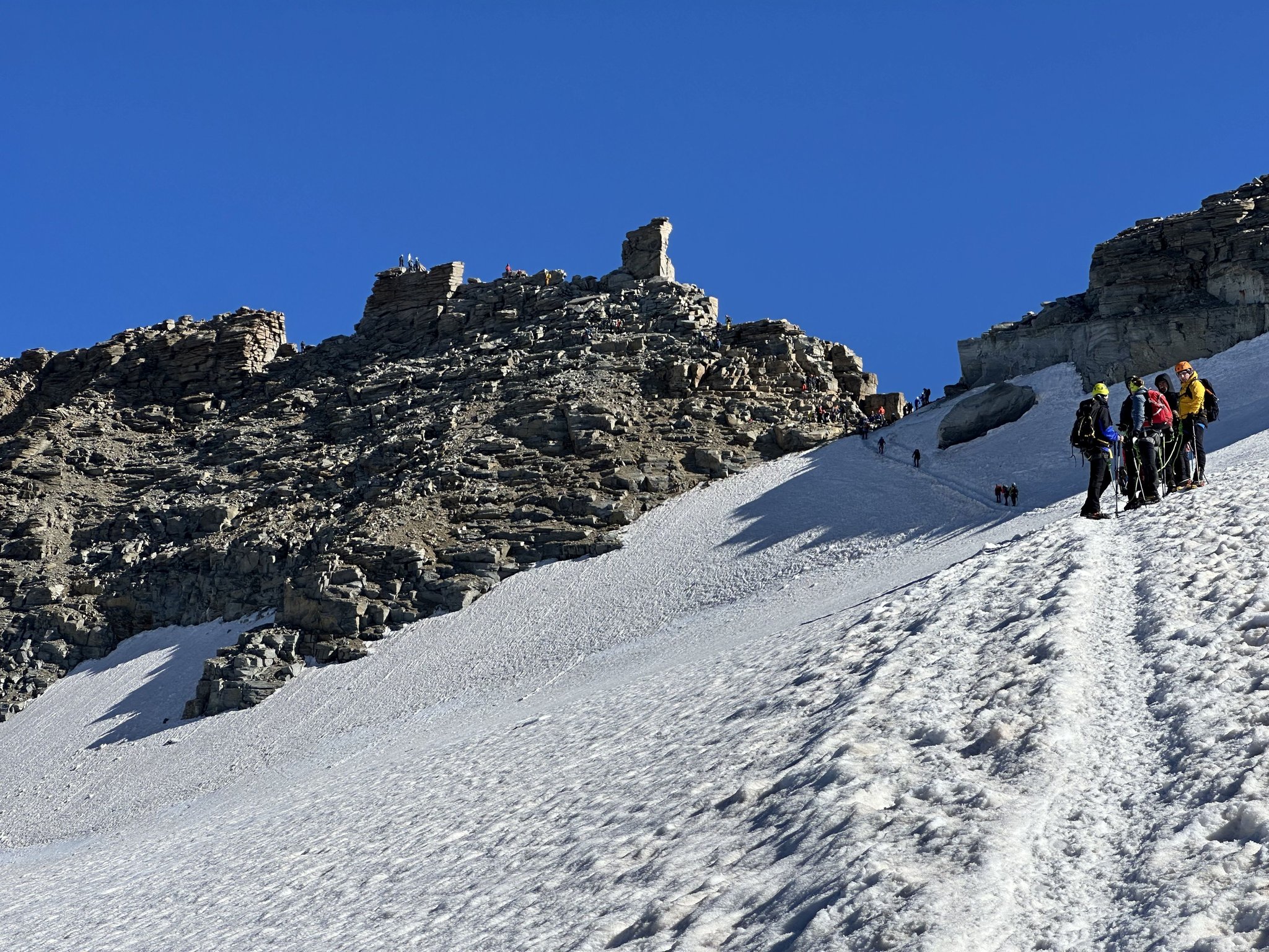 Früh am Morgen starten wir zur Gipfelbesteigung des Gran Paradiso. Über den Gletscher, vorbei an eindrucksvollen