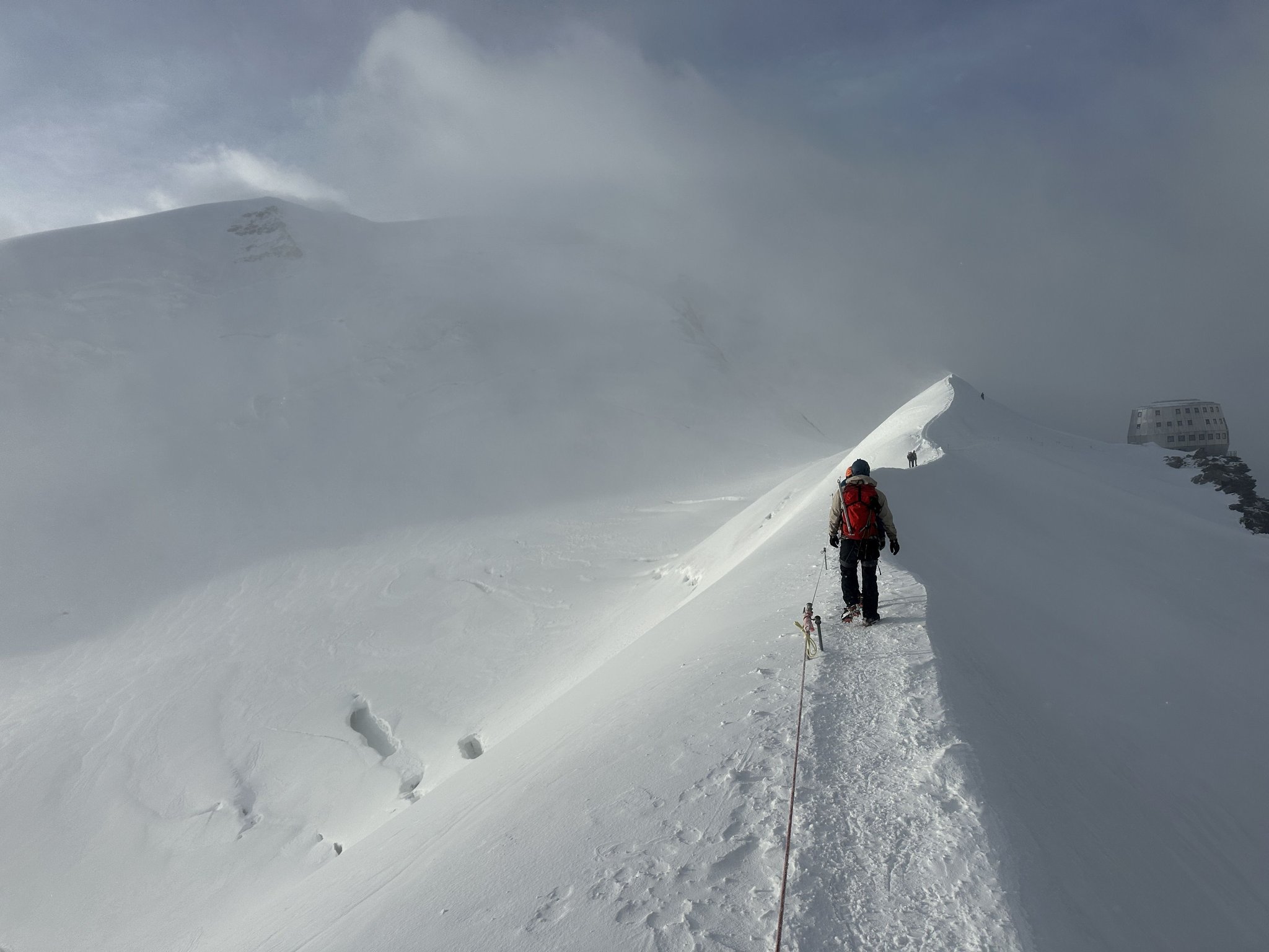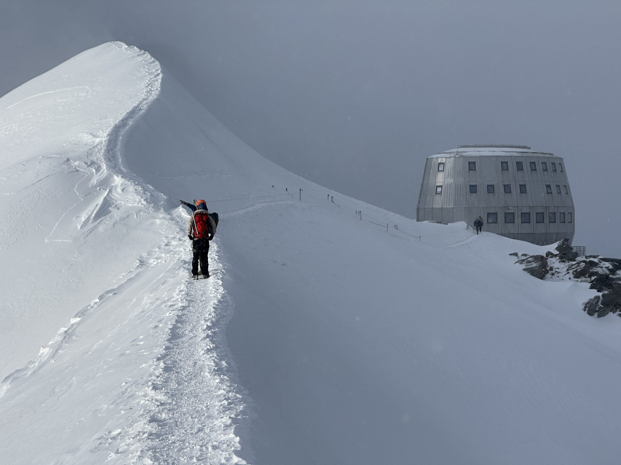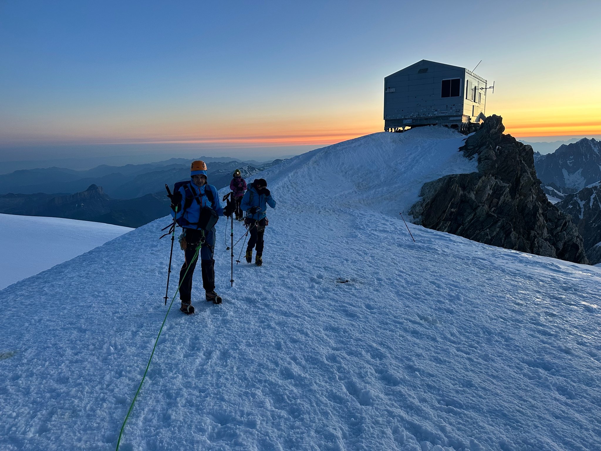 die Goûter Hütte, wo wir frühstücken. Danach folgt der Aufstieg zum Mont-Blanc-Gipfel (4.810 m).