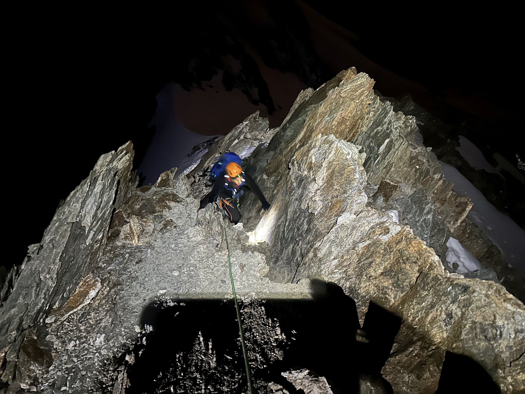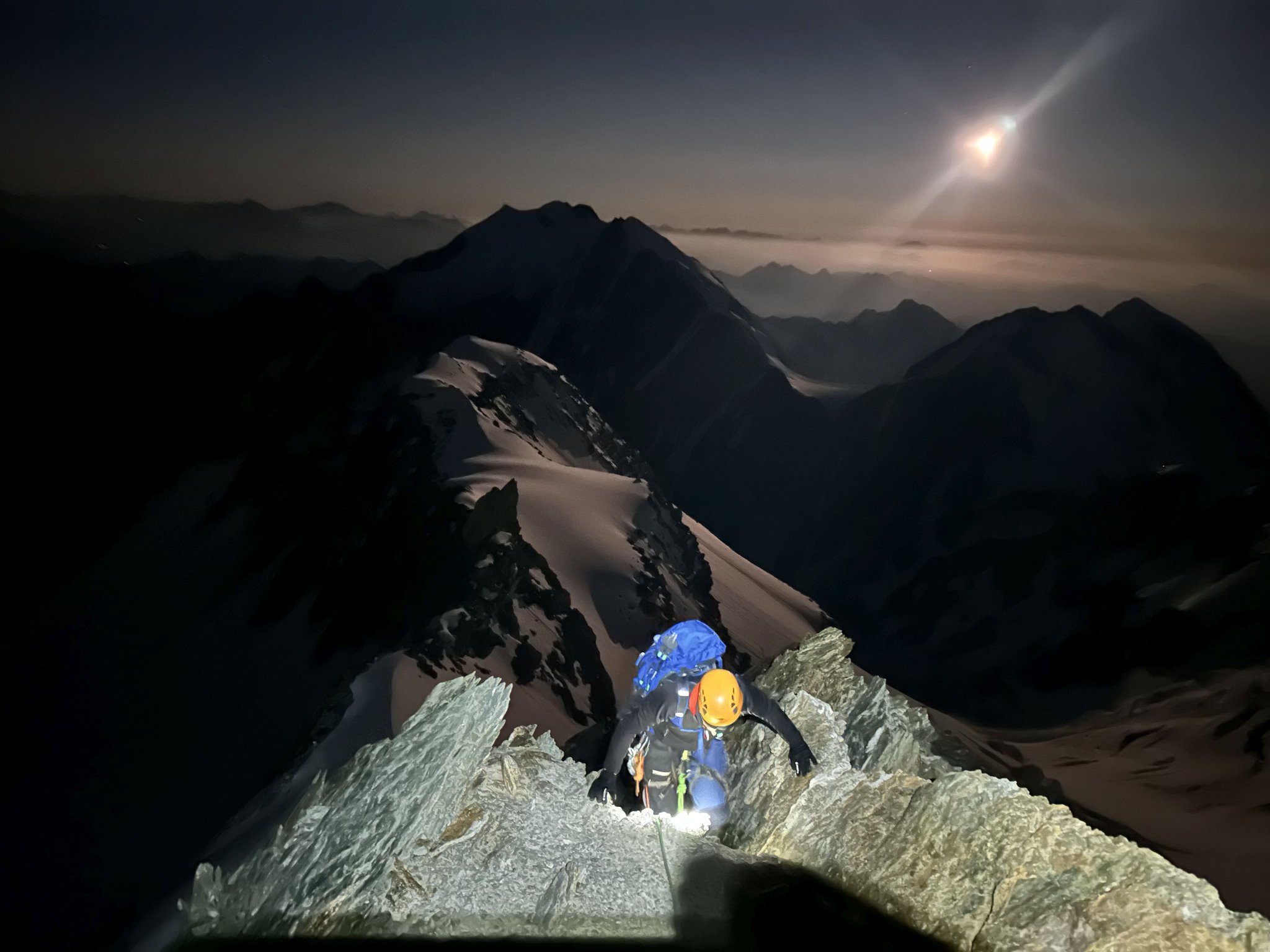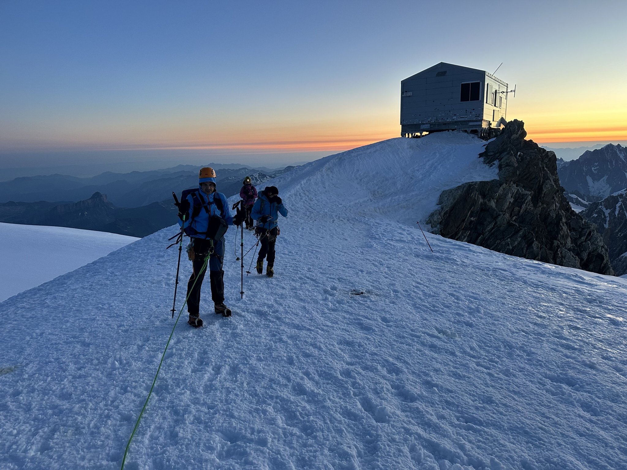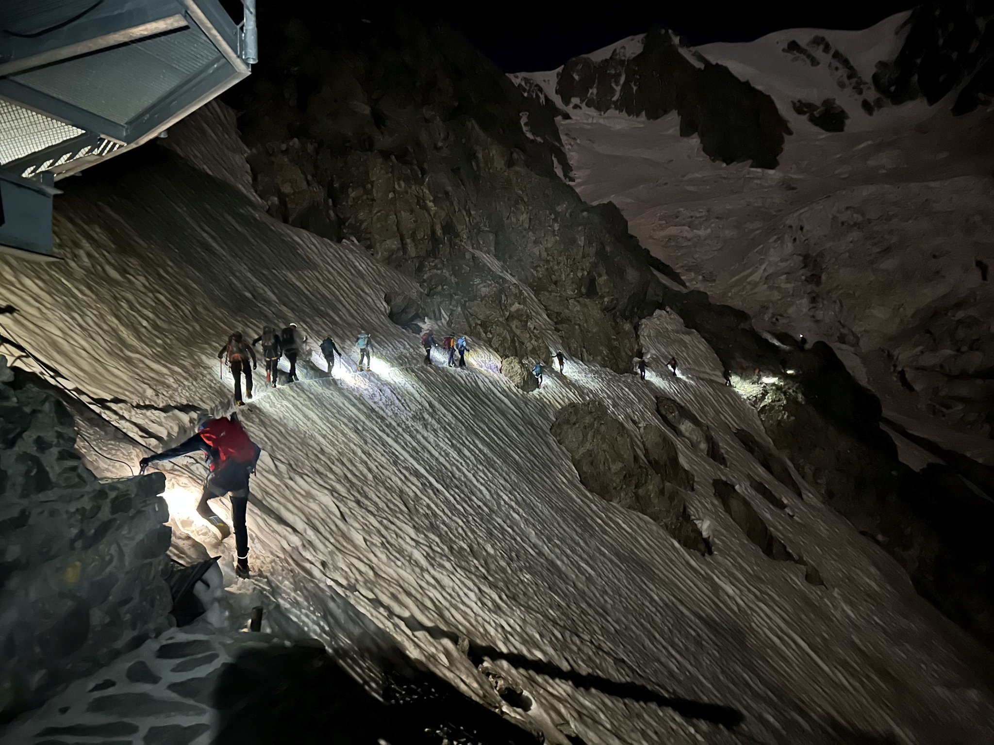 Früher Start um Mitternacht mit Stirnlampen. Über den Glacier du Dome, Piton des Italiens, Dome du Gouter und